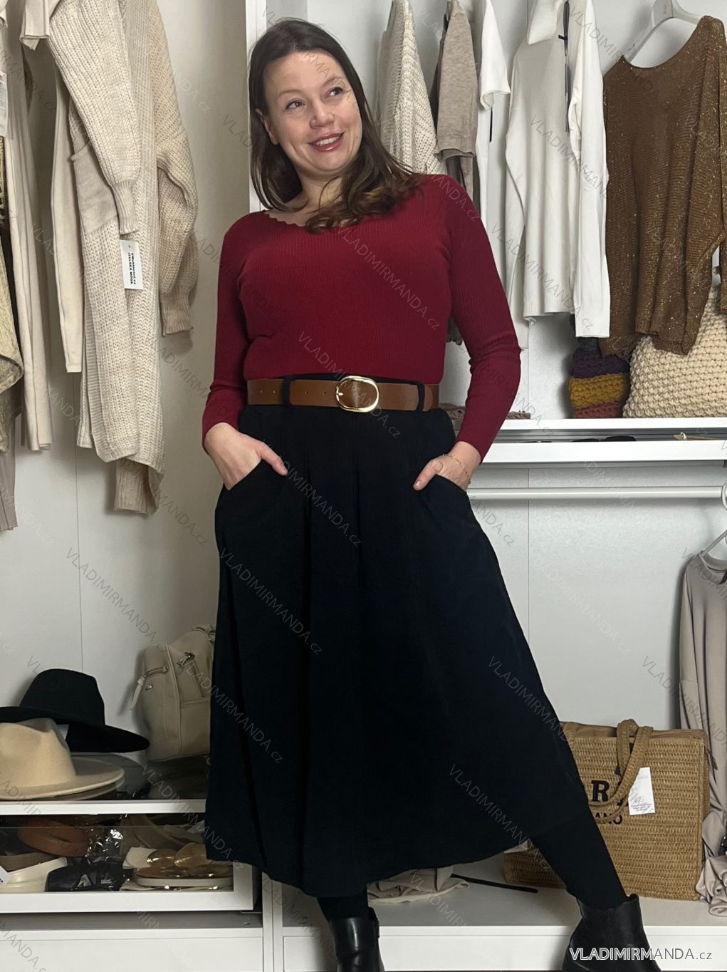 (3155) > Sukňa s páskem manžestrová dámska MONA (S/M/L ONE SIZE) TALIANSKA MóDA IMSM251155/DU černá S/M/L