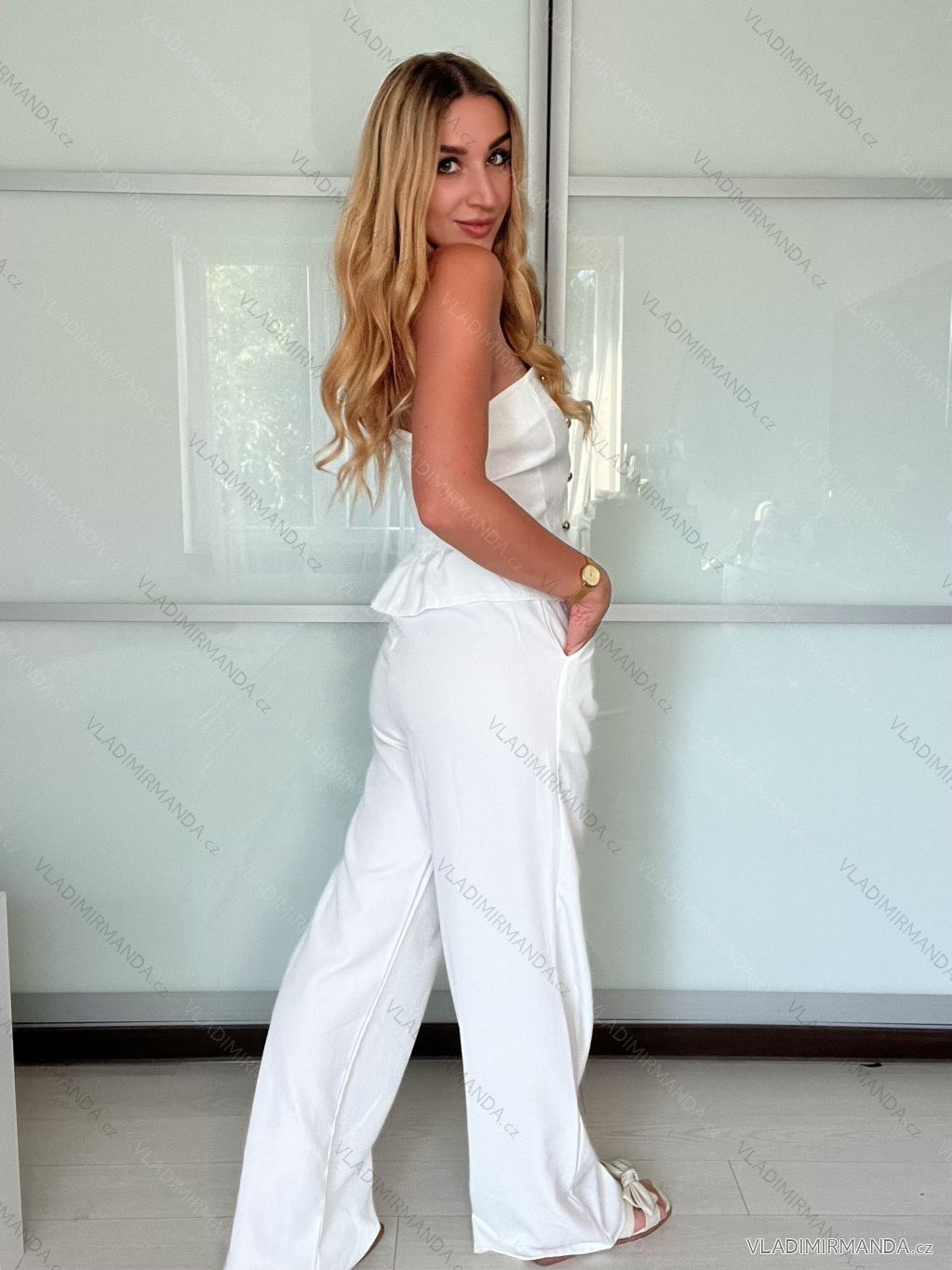 TOVAR (120939) > oblečenie dámske (82017) > Súpravy (2910) > súpravy elegantný (550) > Súprava elegantný top bez rukávov a nohavice dlhé dámske BIANCHI (XS/S/M ONE SIZE) TALIANSKA MÓDA IMWB25855/DU - biela - S / M