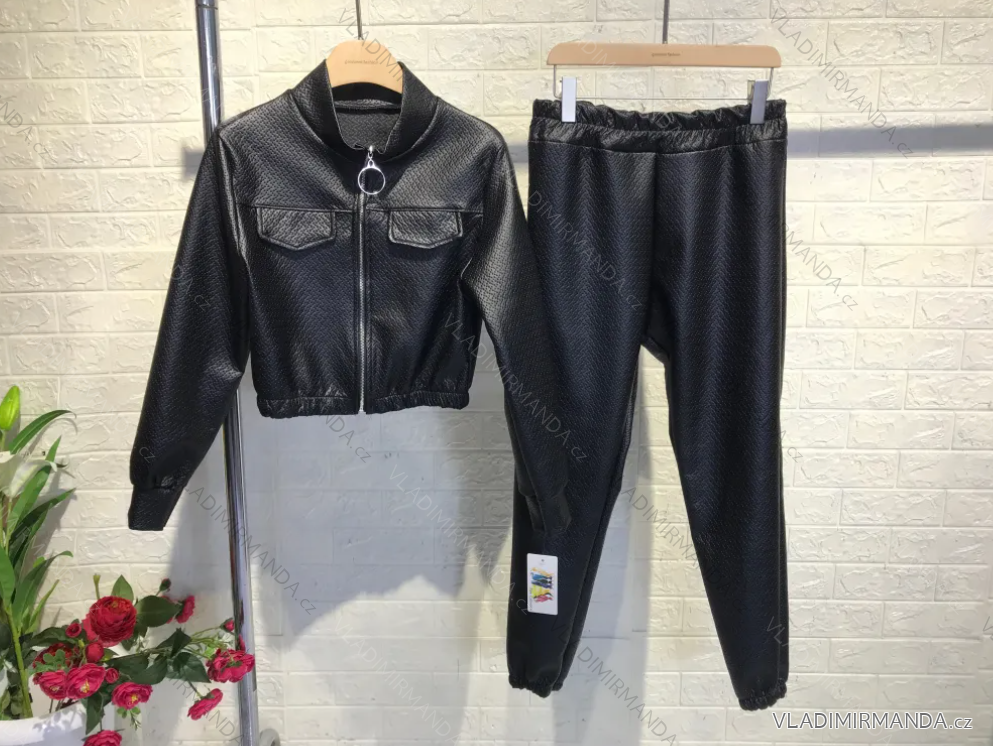 Súprava koženková bunda a nohavice dámska (S/M ONE SIZE) TALIANSKA MÓDA IMPGM232040