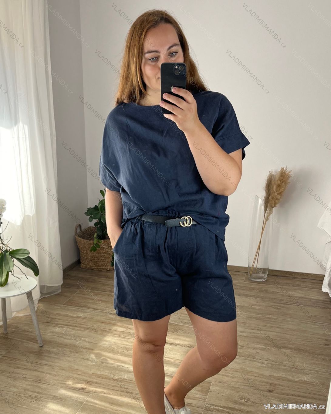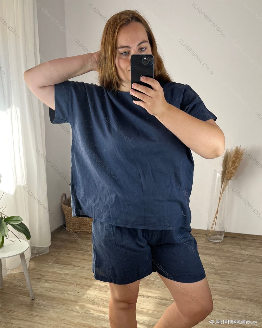 Súprava letná tunika a kraťasy dámska nadrozmer (54/56 ONE SIZE) TALIANSKA MÓDA IMWEC24057/DR tmavo modrá