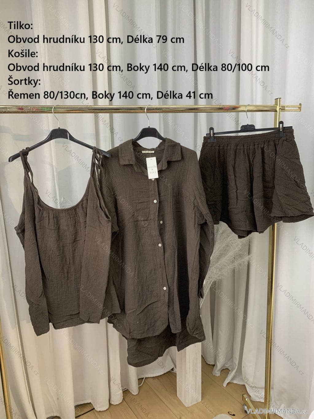Súprava letný mušelín košele, tielko a šortky dámske (S/M/L ONE SIZE) TALIANSKA MÓDA IMWEC25069