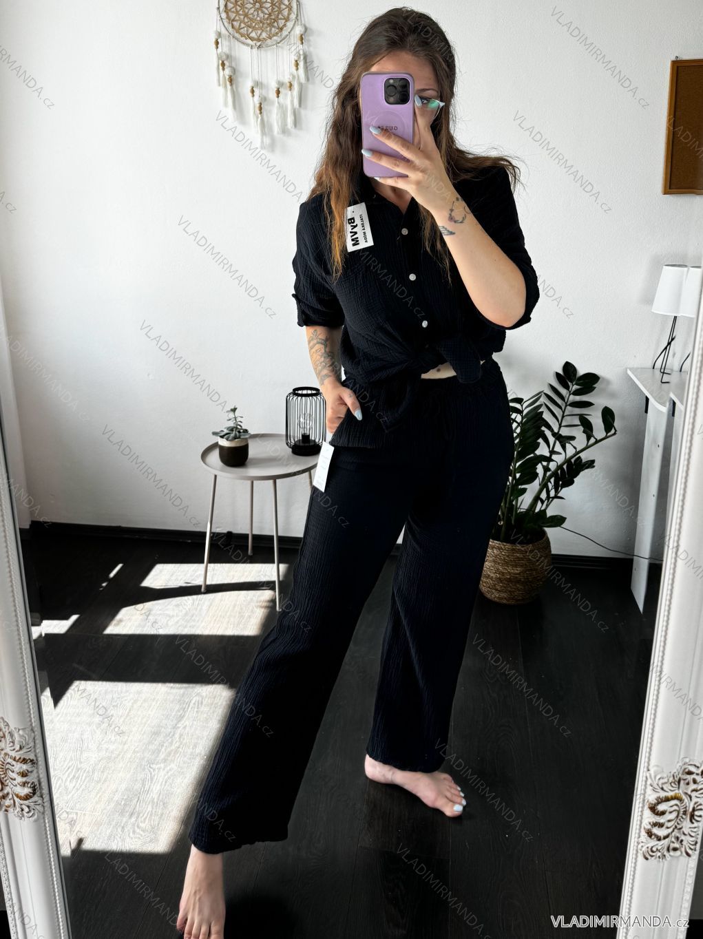 TOVAR (119685) > oblečenie dámske (81065) > Súpravy (2905) > súpravy letné (780) > Súprava mušelínová košeľa a nohavice dámska (S/M/L ONE SIZE) TALIANSKA MÓDA IMWBH24013/DUR - biela - M / L