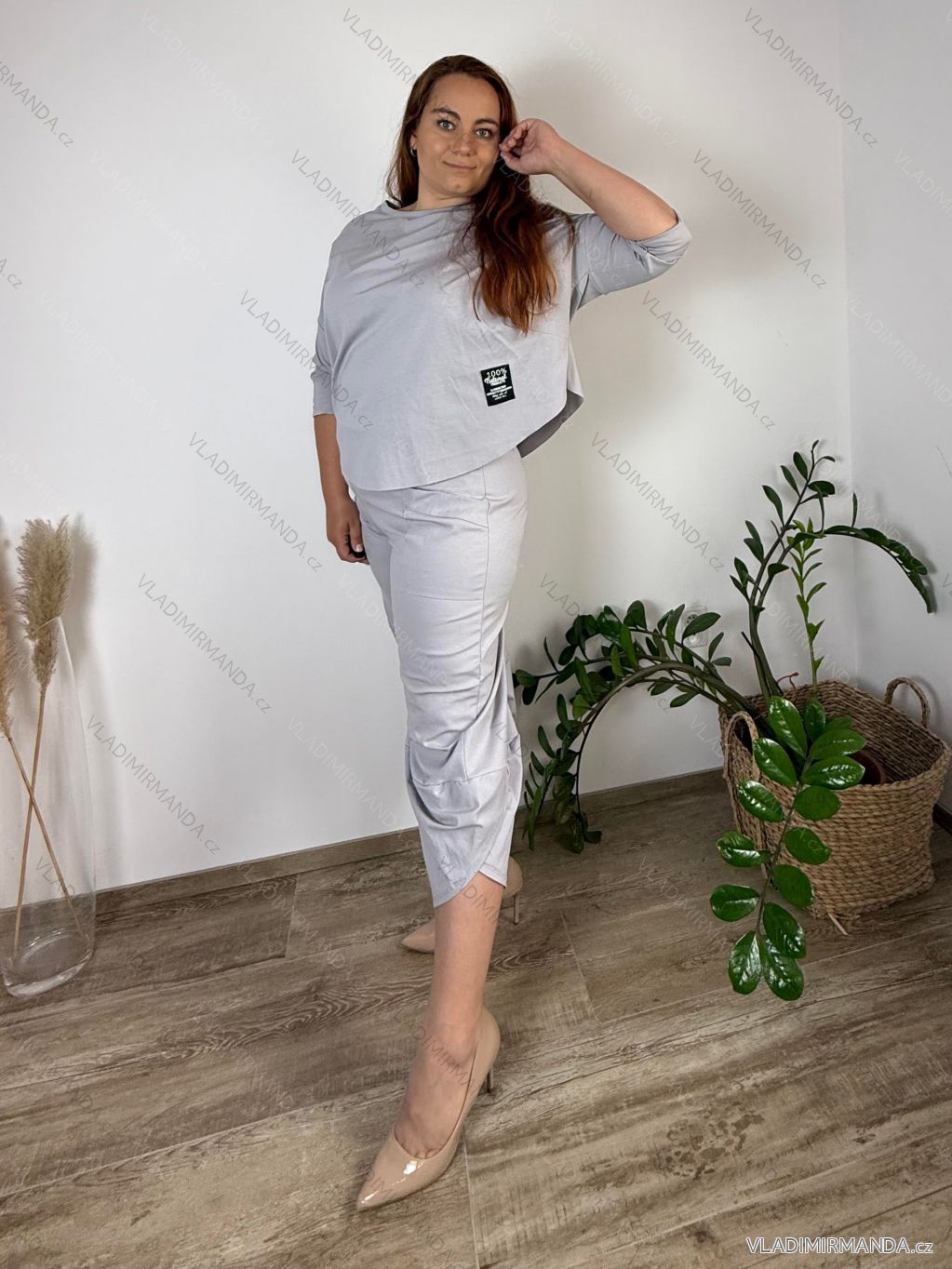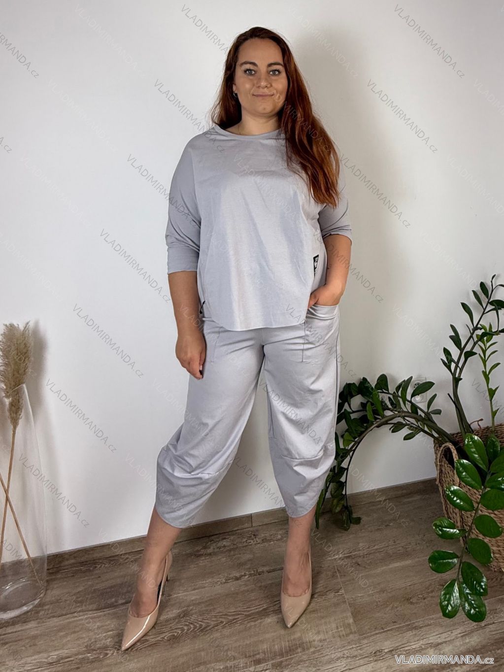 TOVAR (120563) > oblečenie dámske (81692) > Súpravy (2908) > Súpravy teplákové a zamatové (621) > Súprava tepláková oversize mikina dlhý rukáv a tepláky dlhé dámske nadrozmer RUBBY(42/44/46 ONE SIZE) TALIANSKA MÓDA IMWGB25RUBBY/DUR¨ šedá