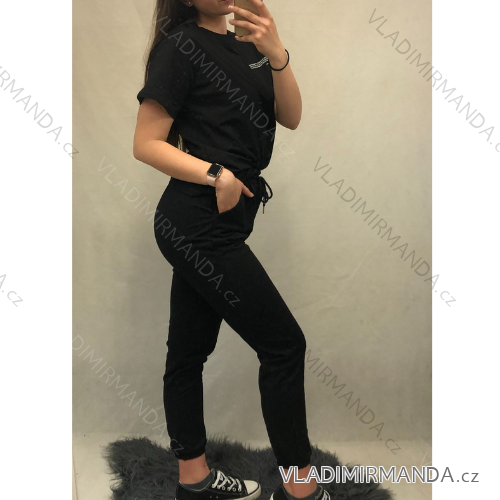 Súprava tričko krátky rukáv a tepláky dámska (S/M-M/L) TALIANSKÁ MÓDA IMWD212643/DR M / L čierna