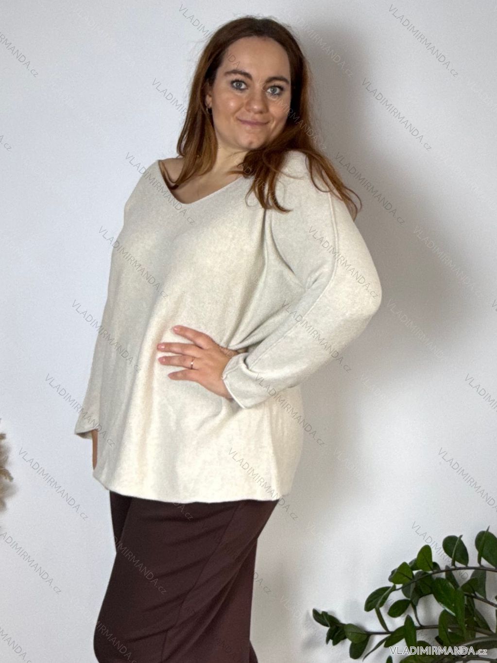 TOVAR (119328) > oblečenie dámske (80685) > šaty (30255) > Sveter dlhý rukáv dámske nadrozmer (56/58 ONE SIZE) TALIANSKA MÓDA IM424552/DUR 56/58 vínová