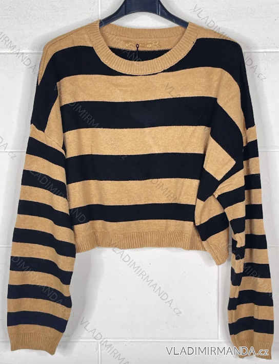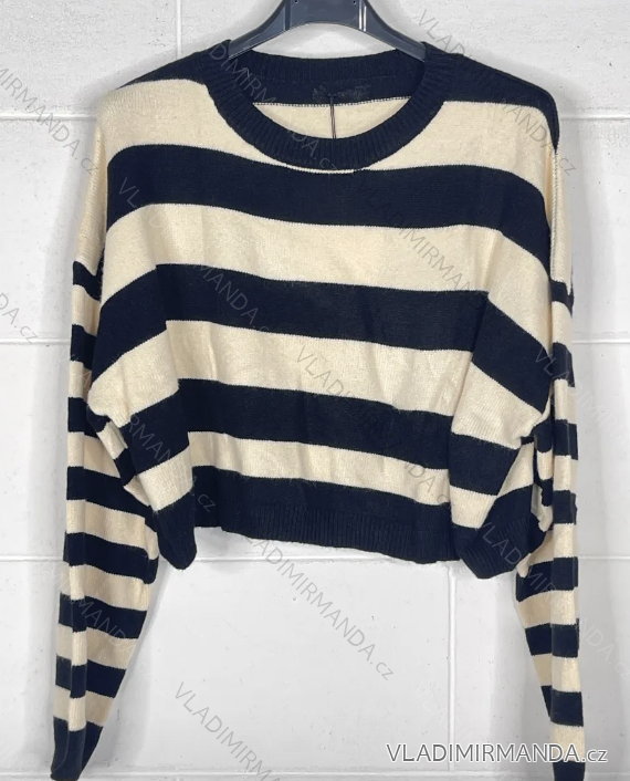 TOVAR (125060) > oblečenie dámske (81731) > Svetre a cardigany (4420) > Sveter krátky dlhý rukáv dámsky prúžok (S/M ONE SIZE) TALIANSKA MÓDA IMPBB23Z8041