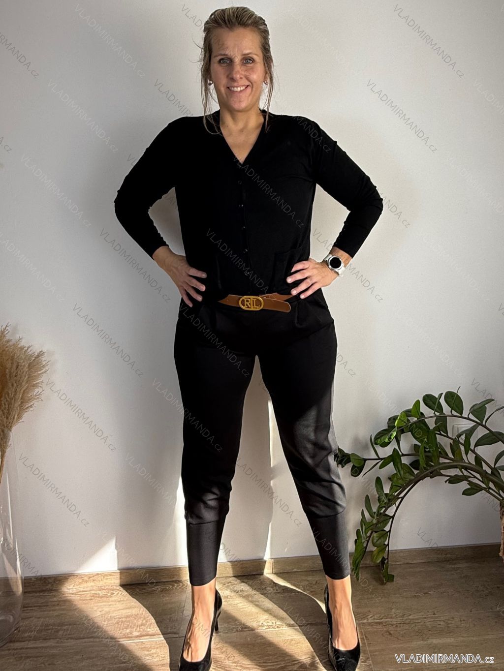 Sveter na gombíky dlhý rukáv dámsky TARA (S/M/L ONE SIZE) TALIANSKA MóDA IMSM251167/DUR S/M/L čierna