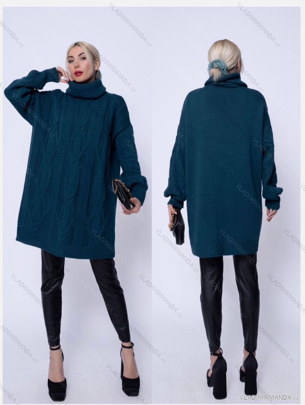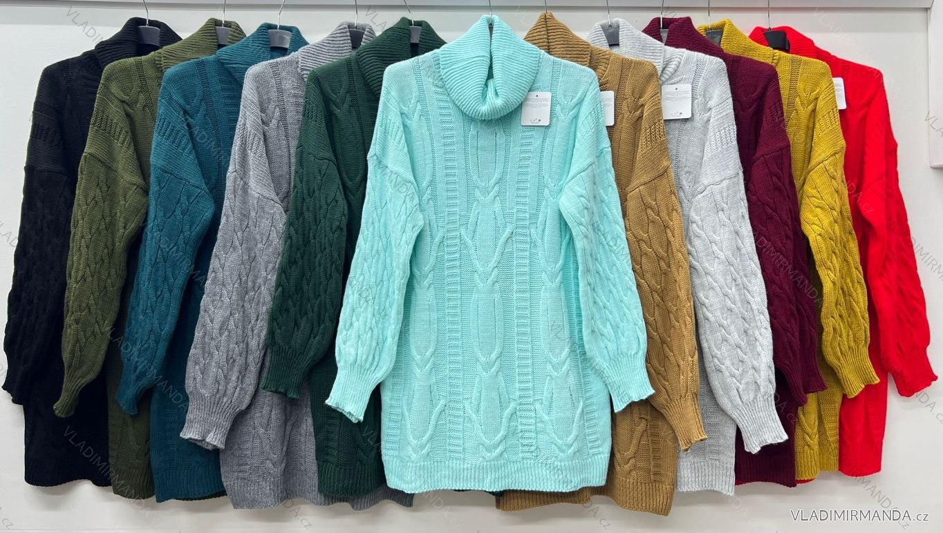 TOVAR (119409) > oblečenie dámske (80759) > Svetre a cardigany (4535) > Sveter teplý hrubý (1316) > Sveter oversize pletený s rolákom dlhý rukáv dámsky nadrozmer (52/54/56 ONE SIZE) TALIANSKA MÓDA IM424778