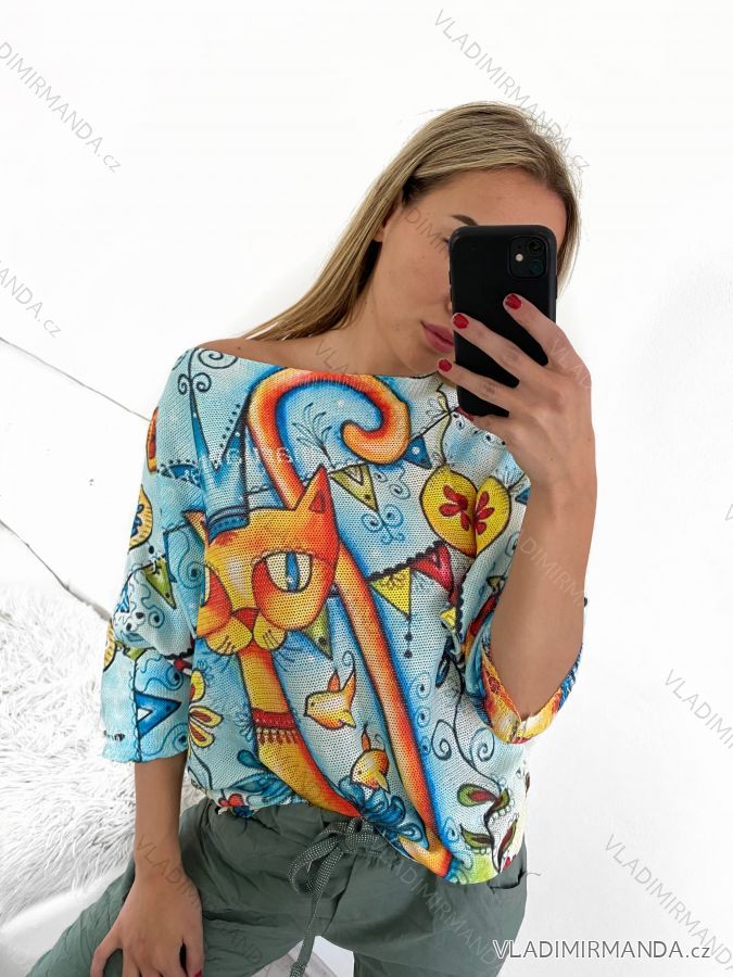 Sveter oversize tenký s potlačou dlhý rukáv dámsky nadrozmer (L/XL/2XL ONE SIZE) TALIANSKA MóDA IMB23CAT