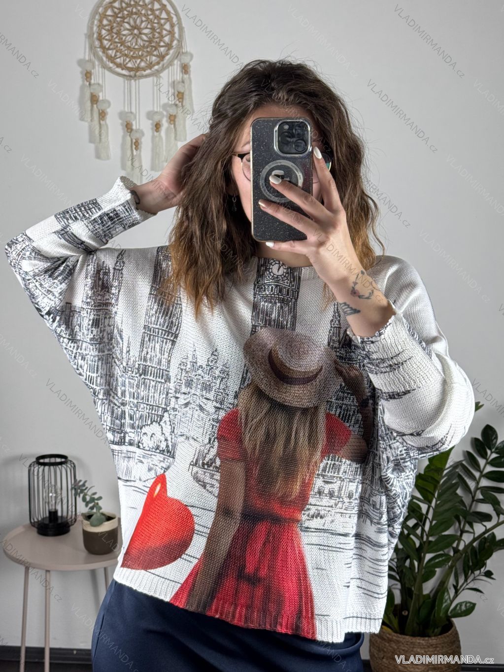 TOVAR (120624) > oblečenie dámske (81985) > Svetre a cardigany (4535) > Sveter oversize tenký s potlačou dámsky (S/M/L ONE SIZE) TALIANSKA MóDA IMB24LONDON