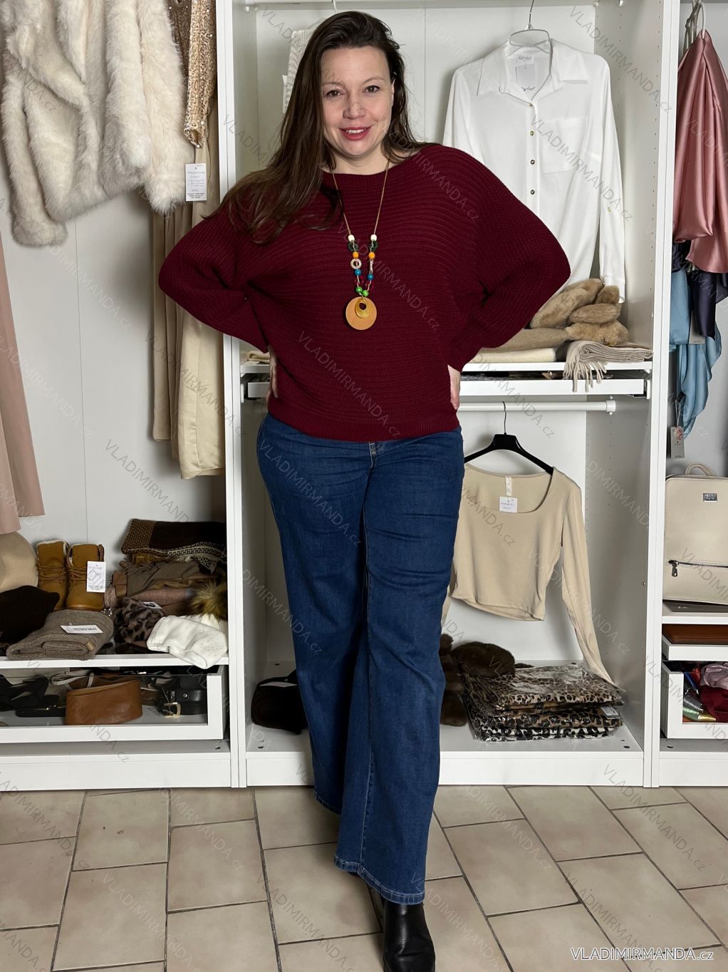 TOVAR (120016) > oblečenie dámske (81282) > Svetre a cardigany (4547) > Sveter teplý hrubý (1326) > Svetr pletený s přívěškem dlouhý rukáv dámské (S/M/L ONE SIZE) ITALSKÁ MÓDA IM424526/DU - vínová - M / L