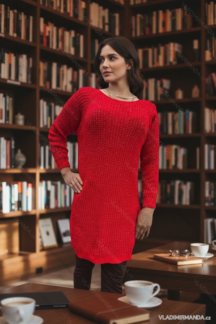 Sveter predĺžený pletený trblietavý dlhý rukáv dámsky (S/M/L ONE SIZE) TALIANSKA MÓDA IMD25266