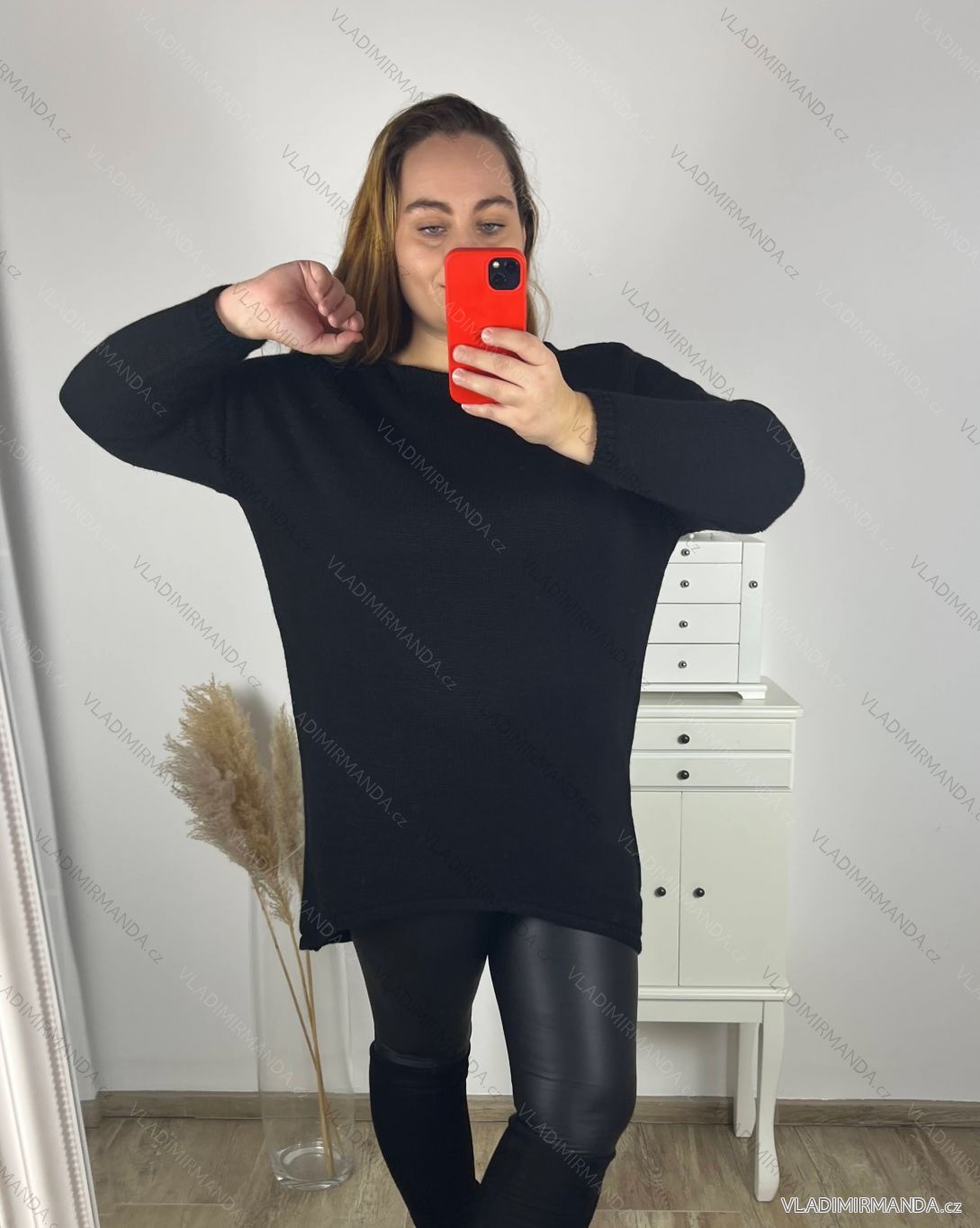 Sveter prodloužený oversize dlhý rukáv dámsky nadrozměr (3XL/4XL/5XL ONE SIZE) TALIANSKÁ MÓDA IMHMS23BASIC