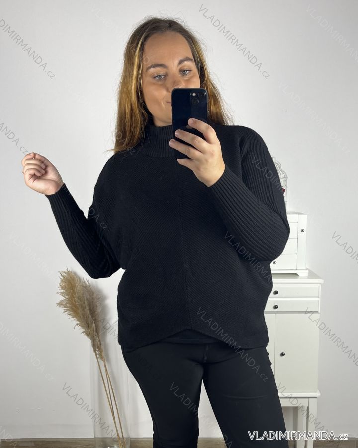 Sveter s dlouhými rukávy dámsky nadrozměr (4XL/5XL ONE SIZE) TALIANSKÁ MÓDA IMS23LEXI/DU 4XL / 5XL čierna