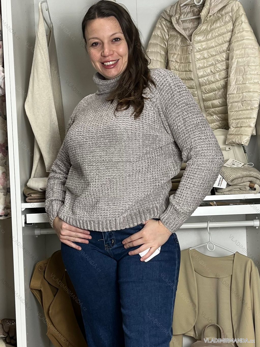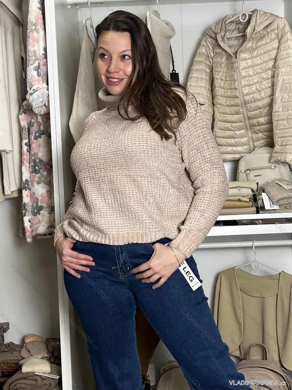TOVAR (120540) > oblečenie dámske (81647) > Svetre a cardigany (4525) > Sveter teplý hrubý (1314) > Sveter s rolákem ženilkový dlhý rukáv dámsky AGYS (M/L-XL/2XL) AMBITIONFLY AMB25N372T