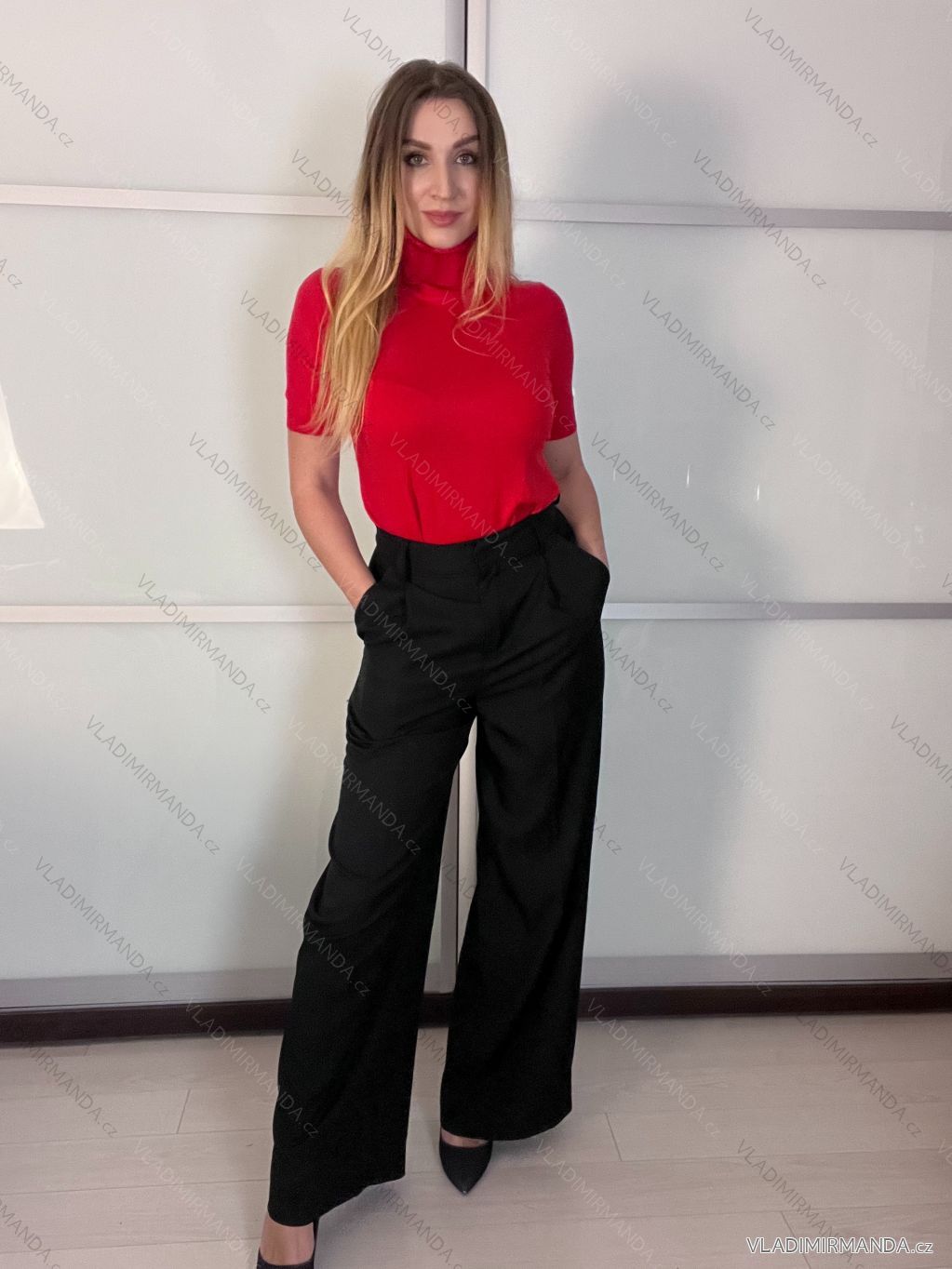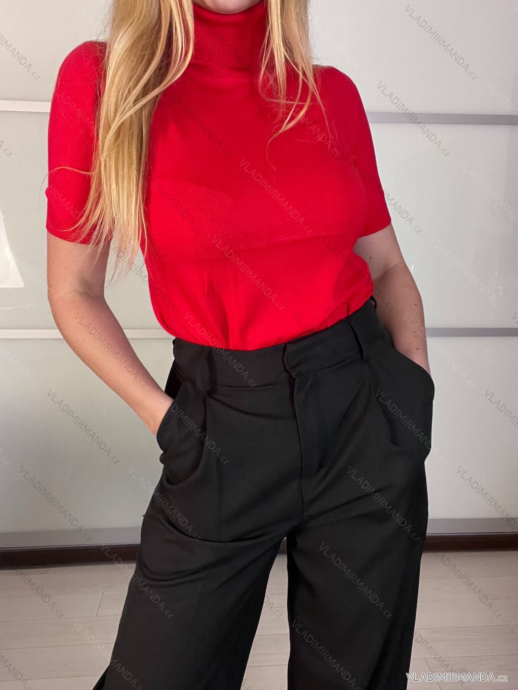 TOVAR (120702) > oblečenie dámske (81785) > Svetre a cardigany (4523) > Sveter s rolákom (722) > Sveter s rolákom krátky rukáv dámsky (S/M/L ONE SIZE) TALIANSKA MÓDA IMWK24F3666-1/DUR S/M/L červená