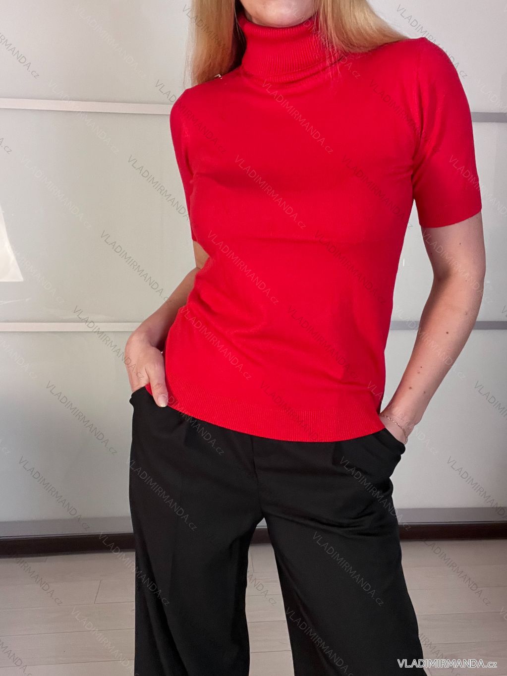 Sveter s rolákom krátky rukáv dámsky (S/M/L ONE SIZE) TALIANSKA MÓDA IMWK24F3666-1/DUR S/M/L červená