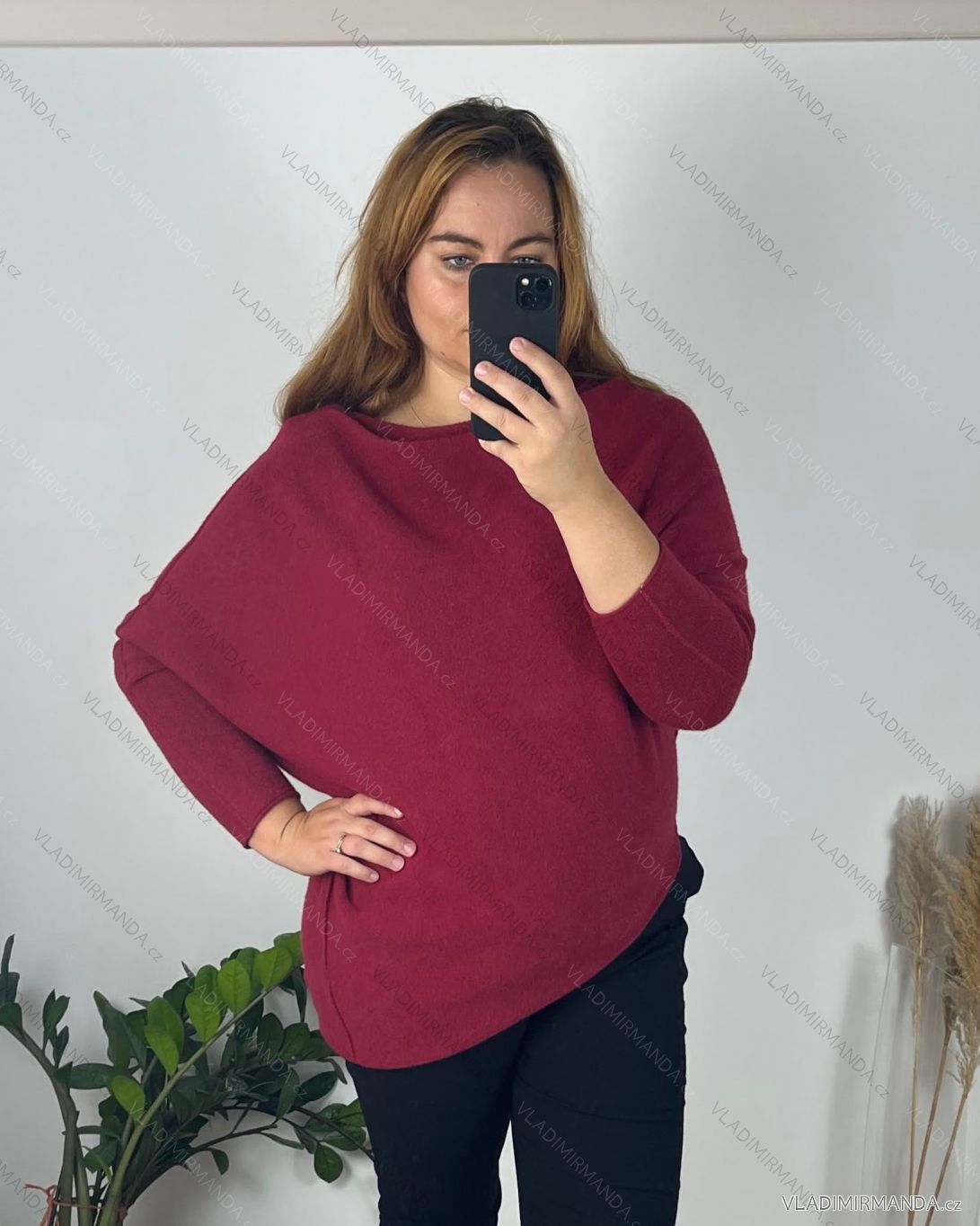 TOVAR (120629) > oblečenie dámske (81751) > Topy, tričká, tuniky a tielka (12968) > tuniky (5158) > Tuniky teplé dl. ruk. (105) > Sveter šikmý dlhý rukáv dámske nadrozměr (48/50/52 ONE SIZE) TALIANSKA MóDA IM424509XL/DU 50/52 vínová