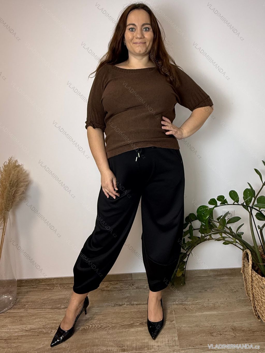 TOVAR (120541) > oblečenie dámske (81648) > Svetre a cardigany (4525) > sveter tenký (1814) > Sveter slabý krátky rukáv dámsky (42/44/46 ONE SIZE) TALIANSKA MÓDA IMSM25103/DU hnědá 42/44/46