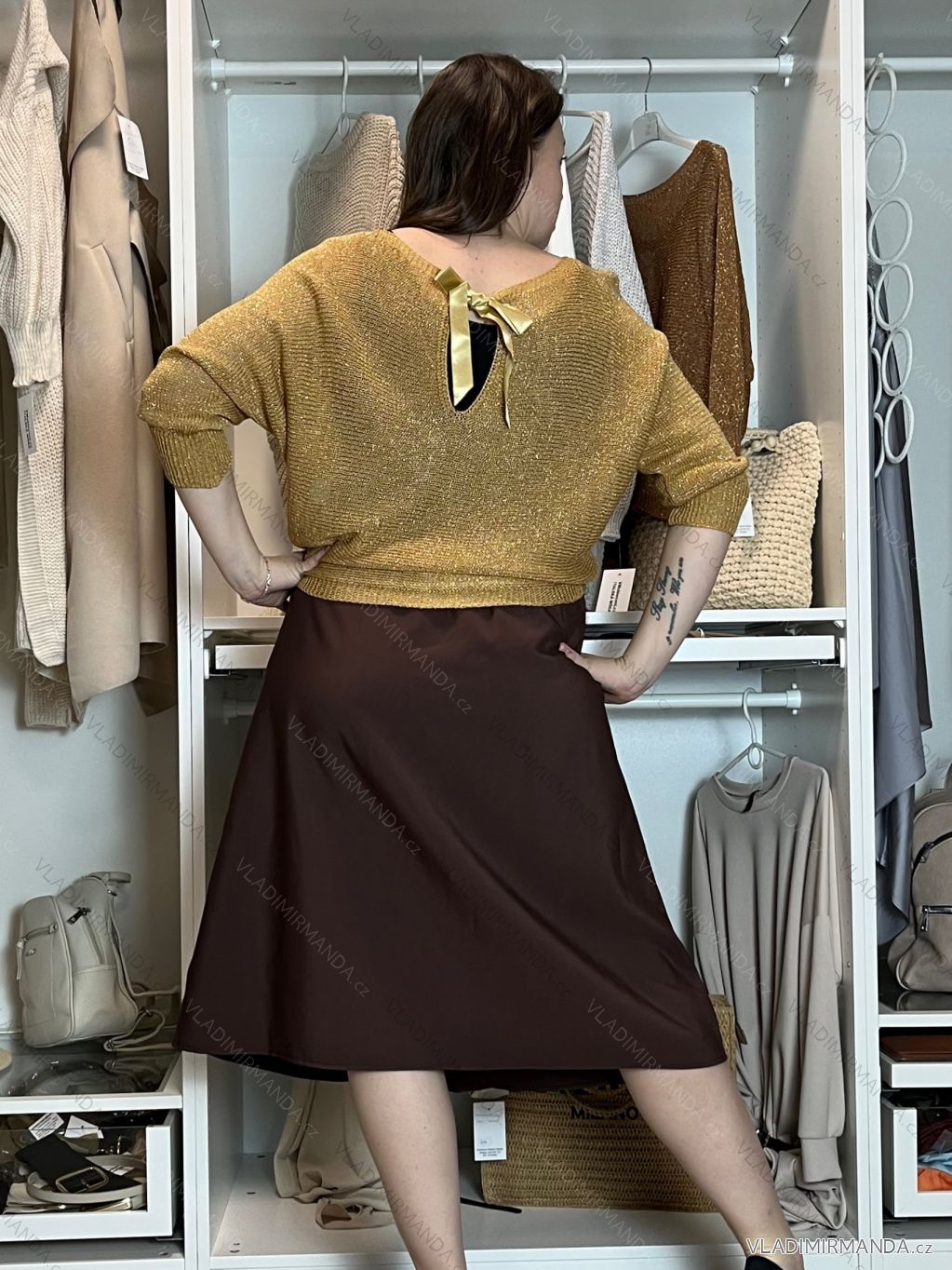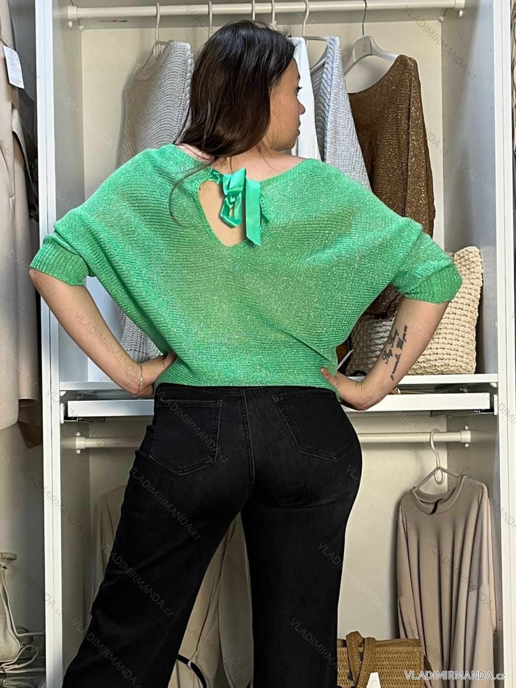 Třpytivý pletený svetr s netopýřím rukávem a mašlí na zádech