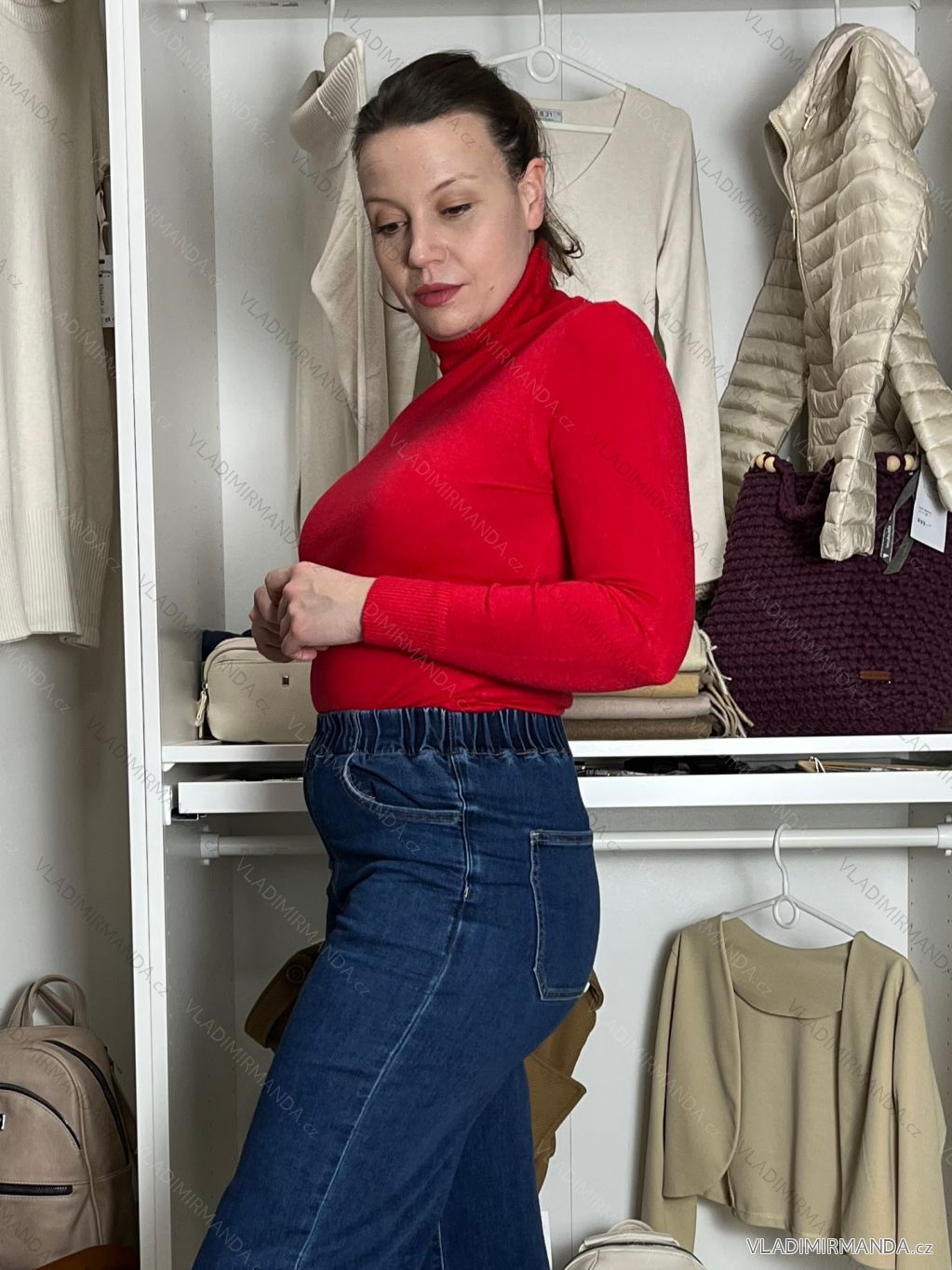 TOVAR (119409) > oblečenie dámske (80759) > Svetre a cardigany (4535) > Sveter s rolákom (720) > Sveter tenký s rolákom dlhý rukáv dámsky HANNAH (S/M/L ONE SIZE) TALIANSKA MÓDA IMPLP2532030050/DUR S/M/L červená
