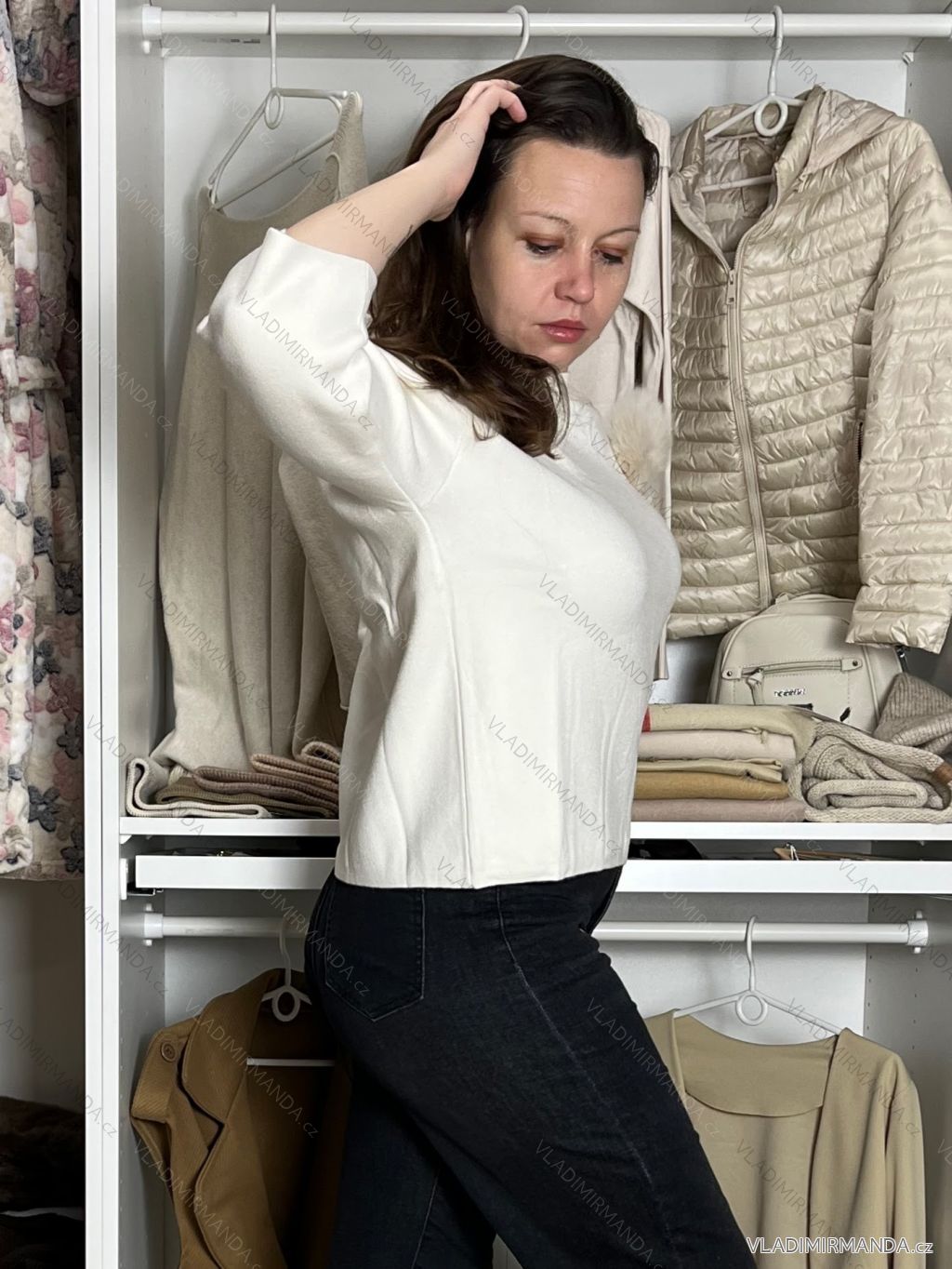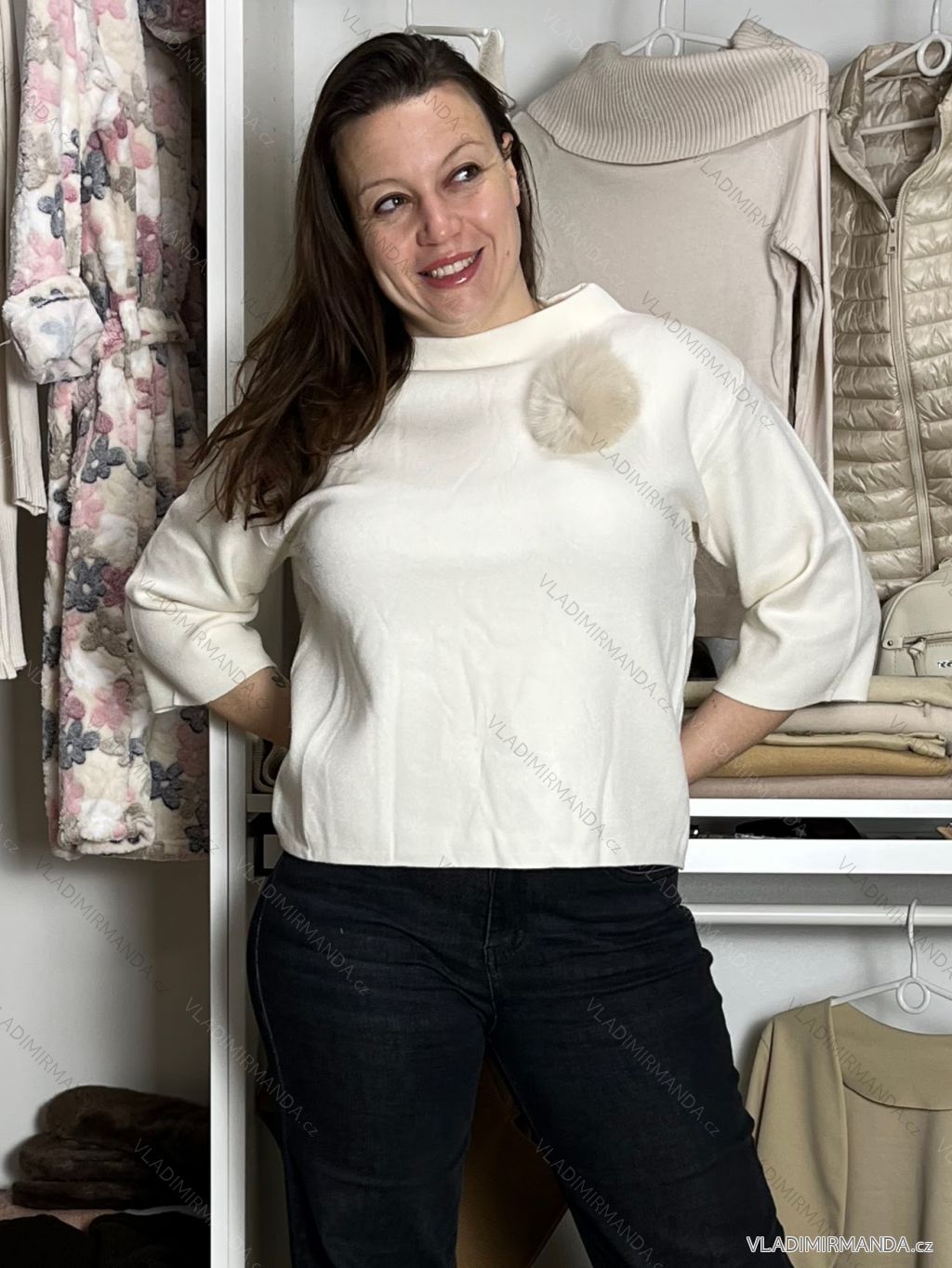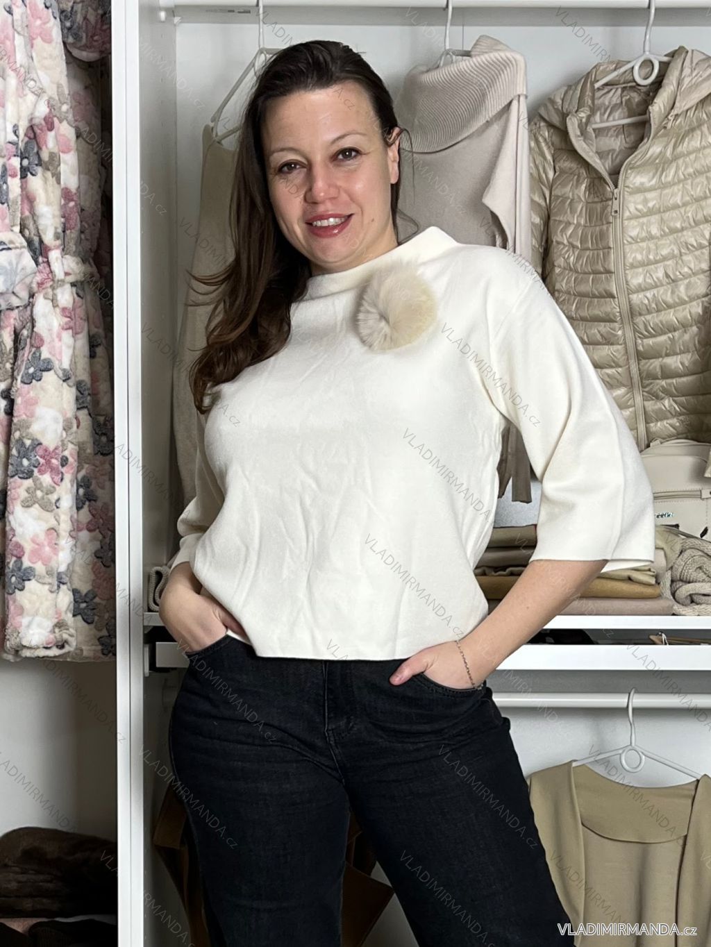 TOVAR (120852) > oblečenie dámske (81919) > Svetre a cardigany (4521) > Sveter teplý hrubý (1315) > Sveter úpletový 3/4 dlhý rukáv dámsky (S/M/L ONE SIZE) TALIANSKA MÓDA IMM24M5986-1/DU - biela - S/M/L