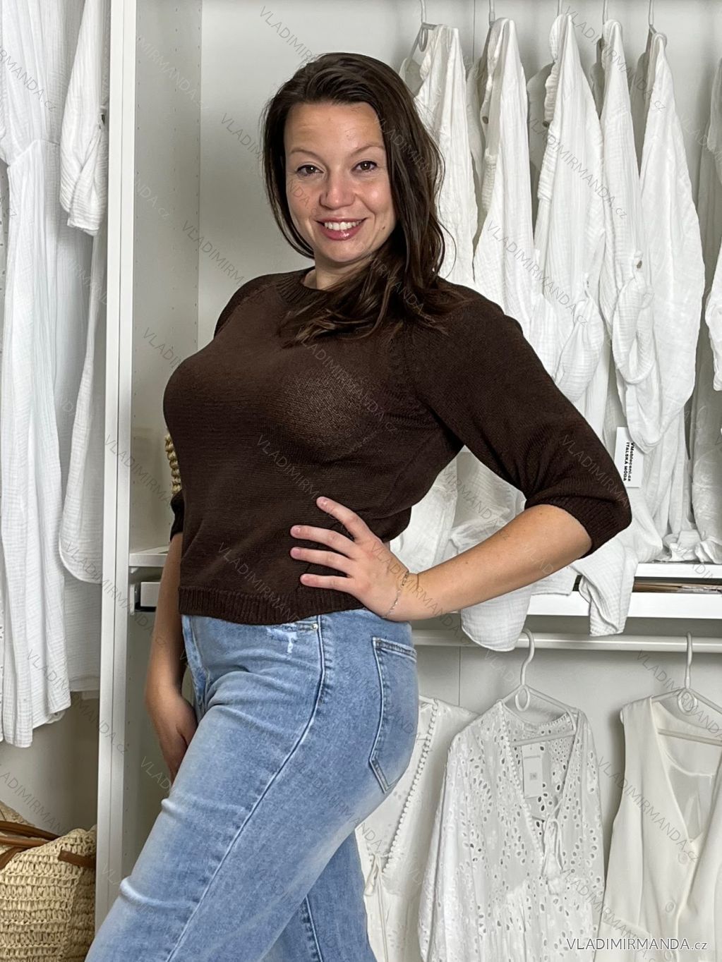 Sveter úpletový 3/4 dlhý rukáv dámske (S/M/L ONE SIZE) TALIANSKA MÓDA IM5252422/DU M / L hnedá