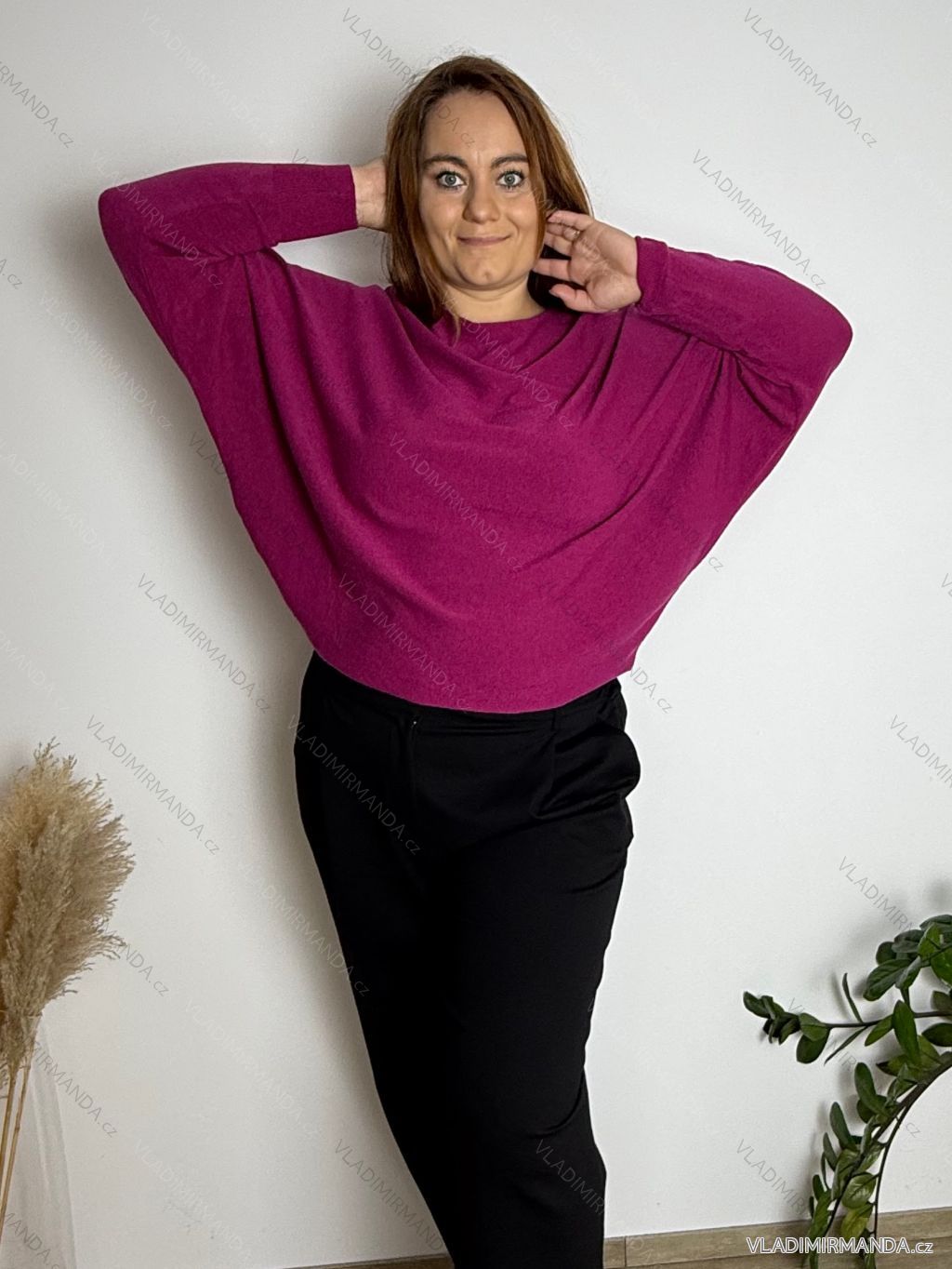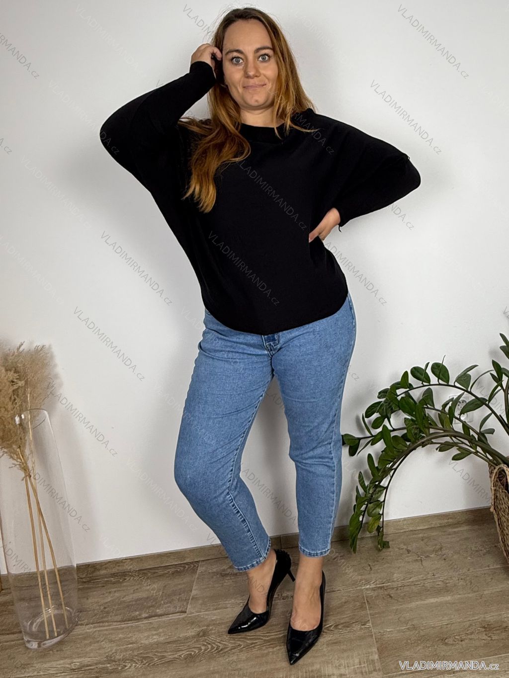 Sveter úpletový dlhý rukáv dámsky nadrozměr (52/54/56 ONE SIZE) TALIANSKA MÓDA IM4251135/DUR žlutá hořčicová