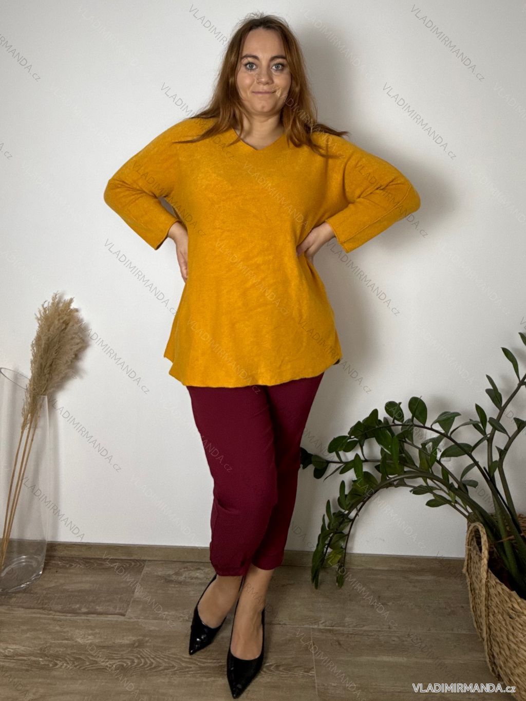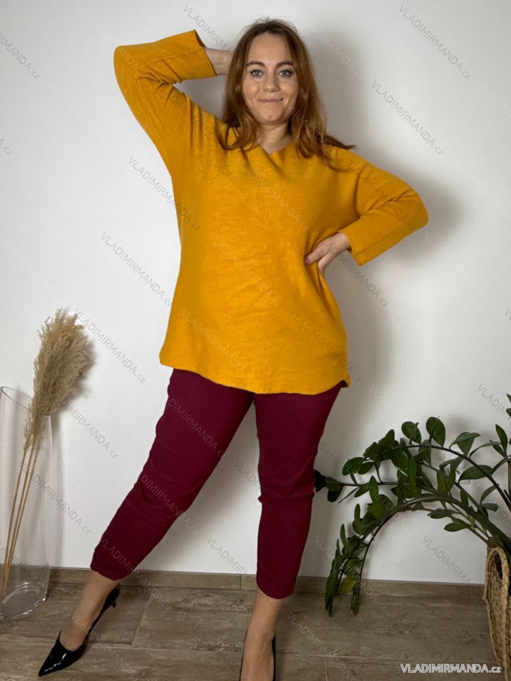 TOVAR (120541) > oblečenie dámske (81648) > Svetre a cardigany (4525) > Sveter úpletový dlhý rukáv dámsky nadrozmer (54/56/58 ONE SIZE) TALIANSKA MÓDA IMC25366/DUR 54/56/58 žlutá okrová