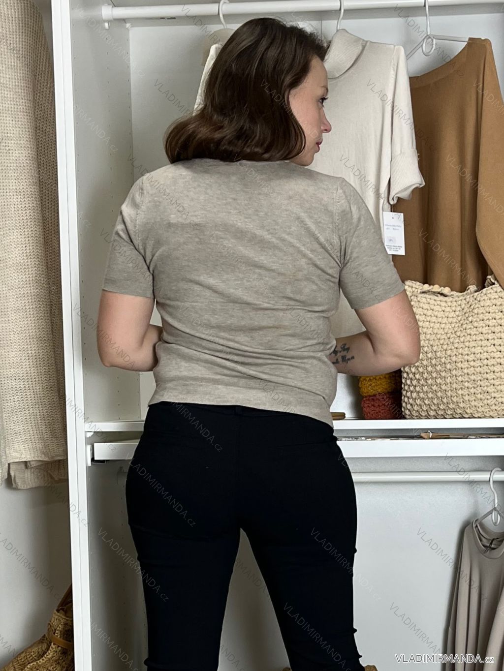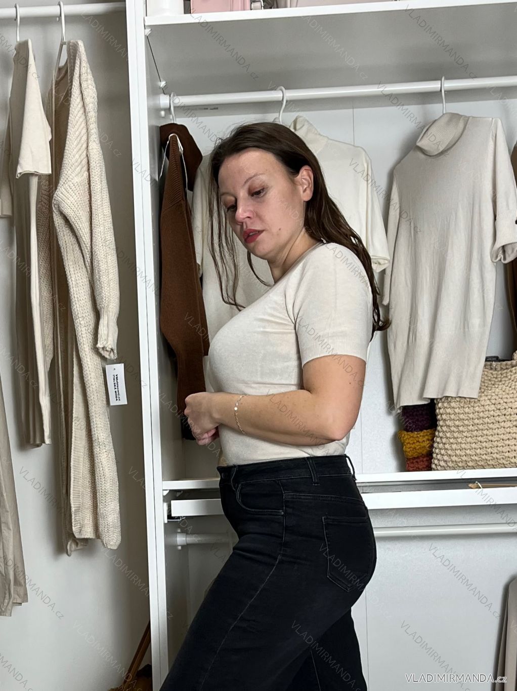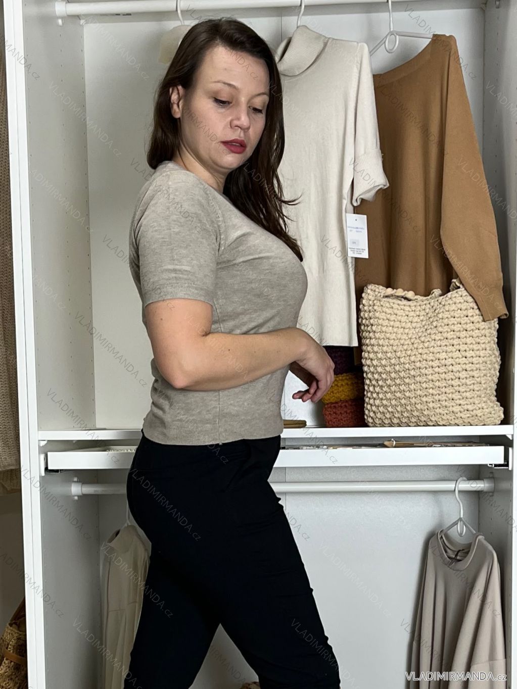 Sveter upletový tenký krátky rukáv dámske LEXI (S/M/L ONE SIZE) TALIANSKA MÓDA IMWCP25W8505/DUR sv. béžová S/M/L