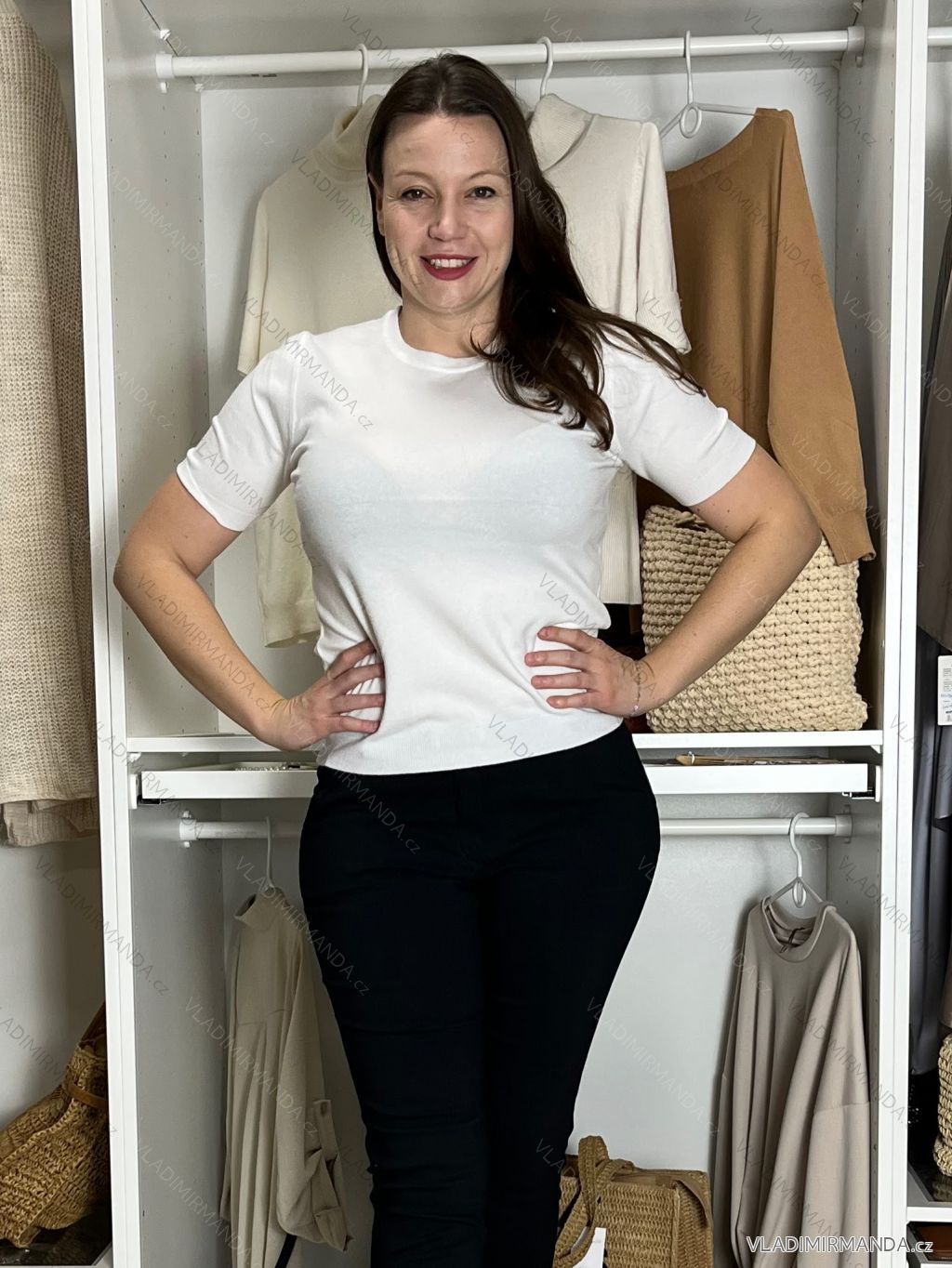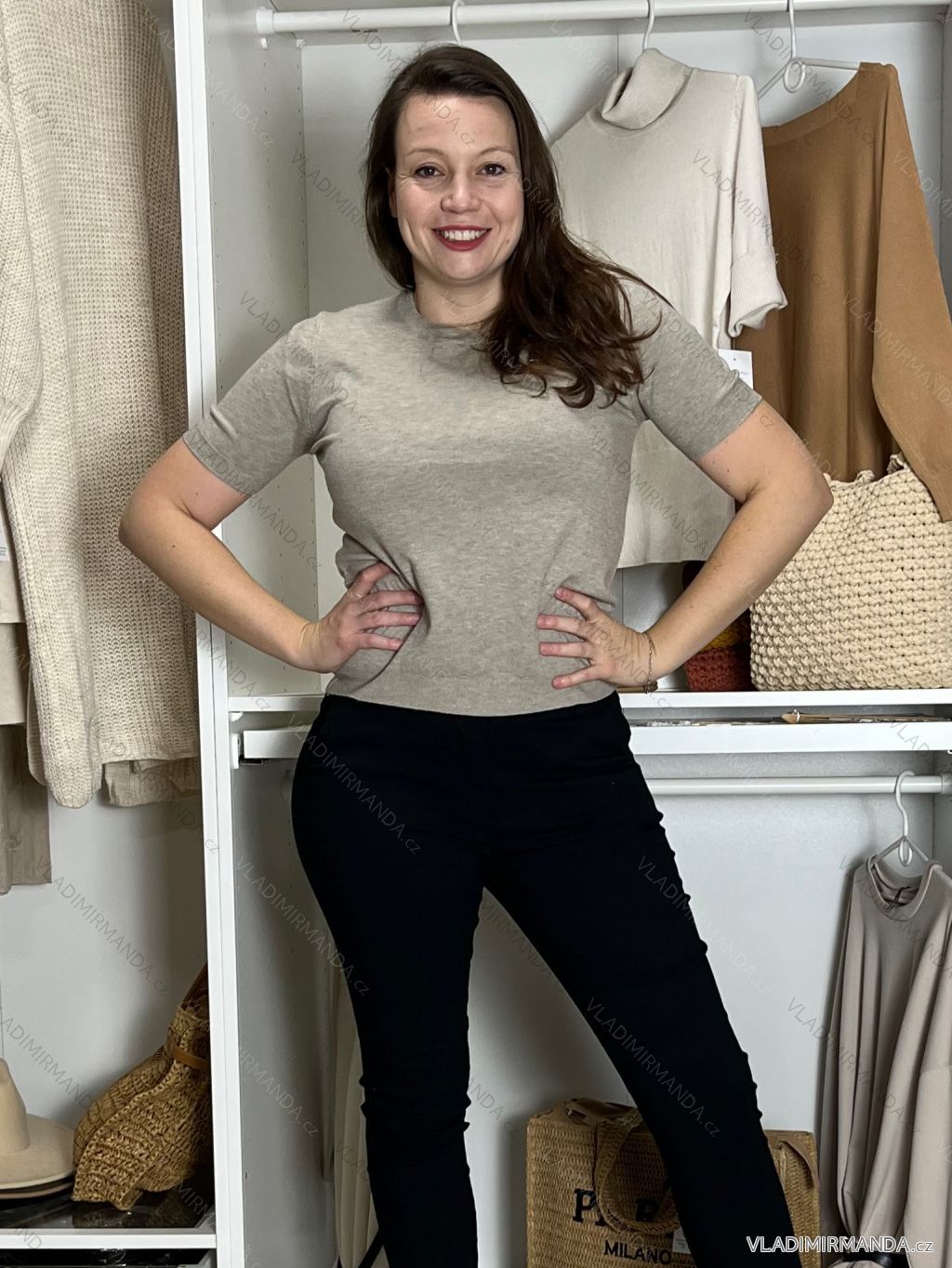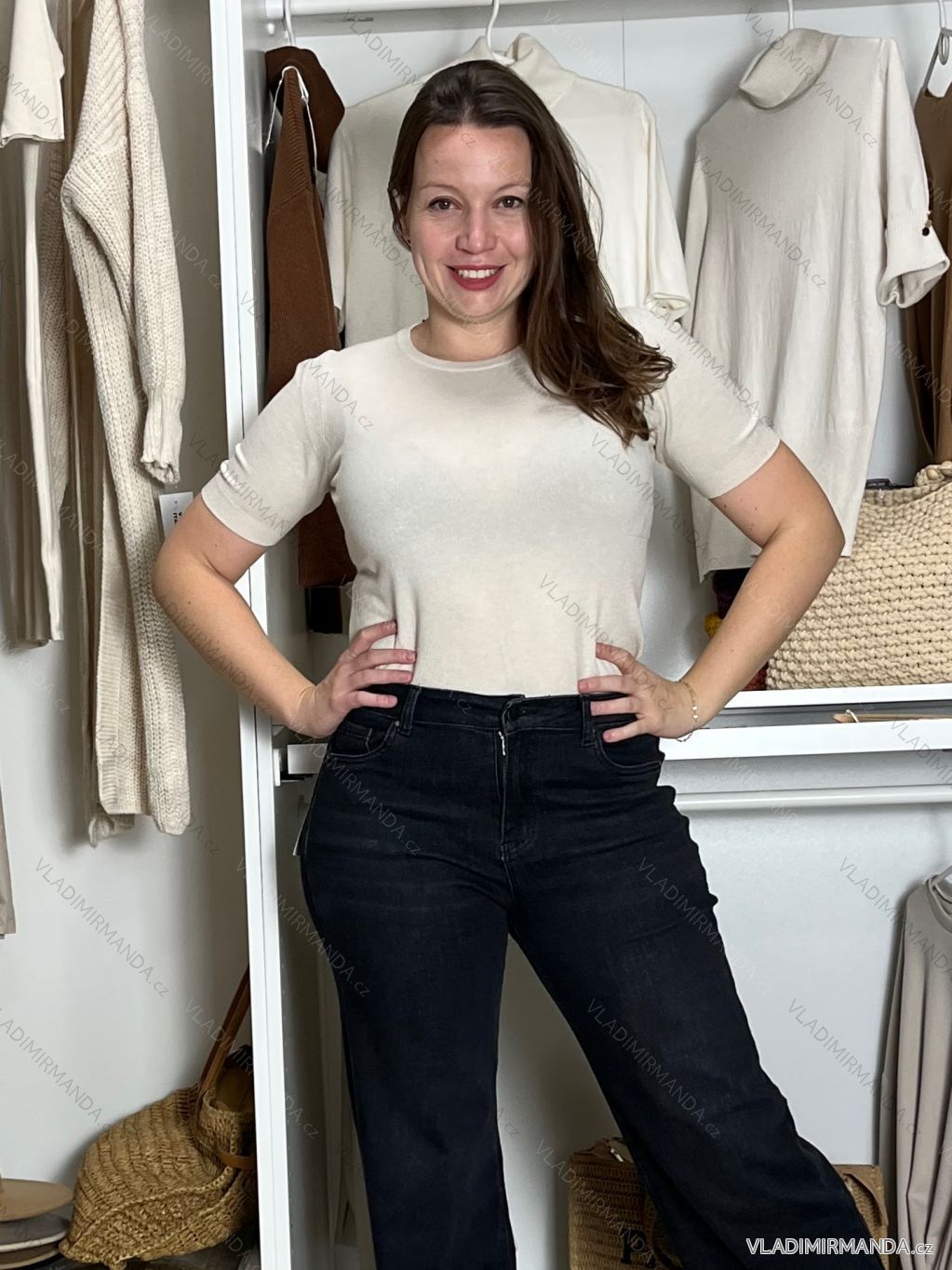 Sveter upletový tenký krátky rukáv dámske LEXI (S/M/L ONE SIZE) TALIANSKA MÓDA IMWCP25W8505/DUR sv. béžová S/M/L