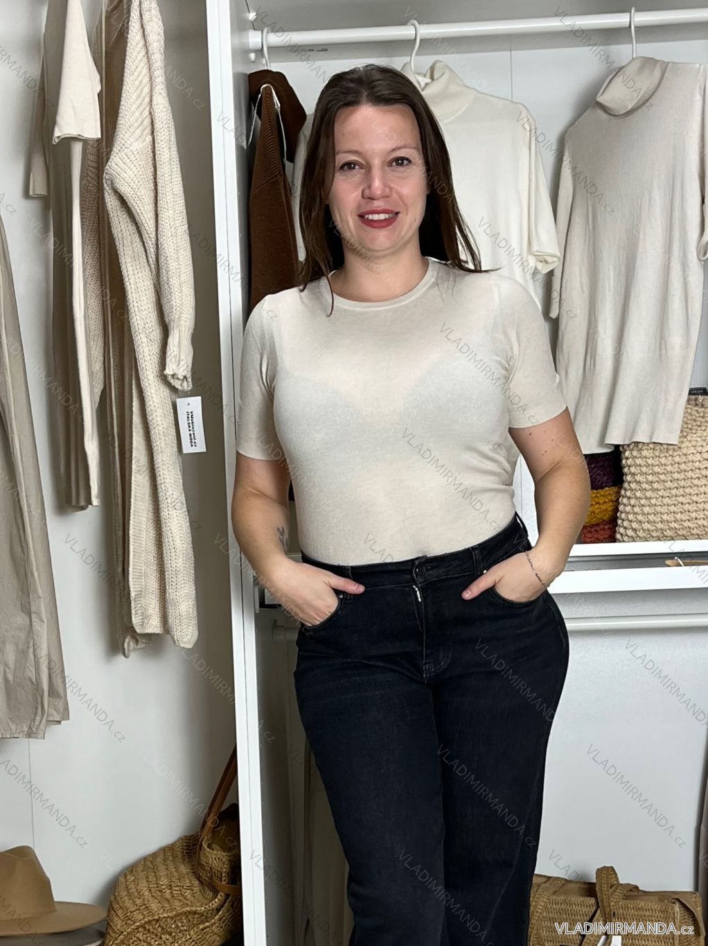 TOVAR (120541) > oblečenie dámske (81648) > Topy, tričká, tuniky a tielka (12957) > Tričká (5544) > Tričká krátky rukáv (3892) > Sveter upletový tenký krátky rukáv dámske LEXI (S/M/L ONE SIZE) TALIANSKA MÓDA IMWCP25W8505/DUR sv. béžová S/M/L