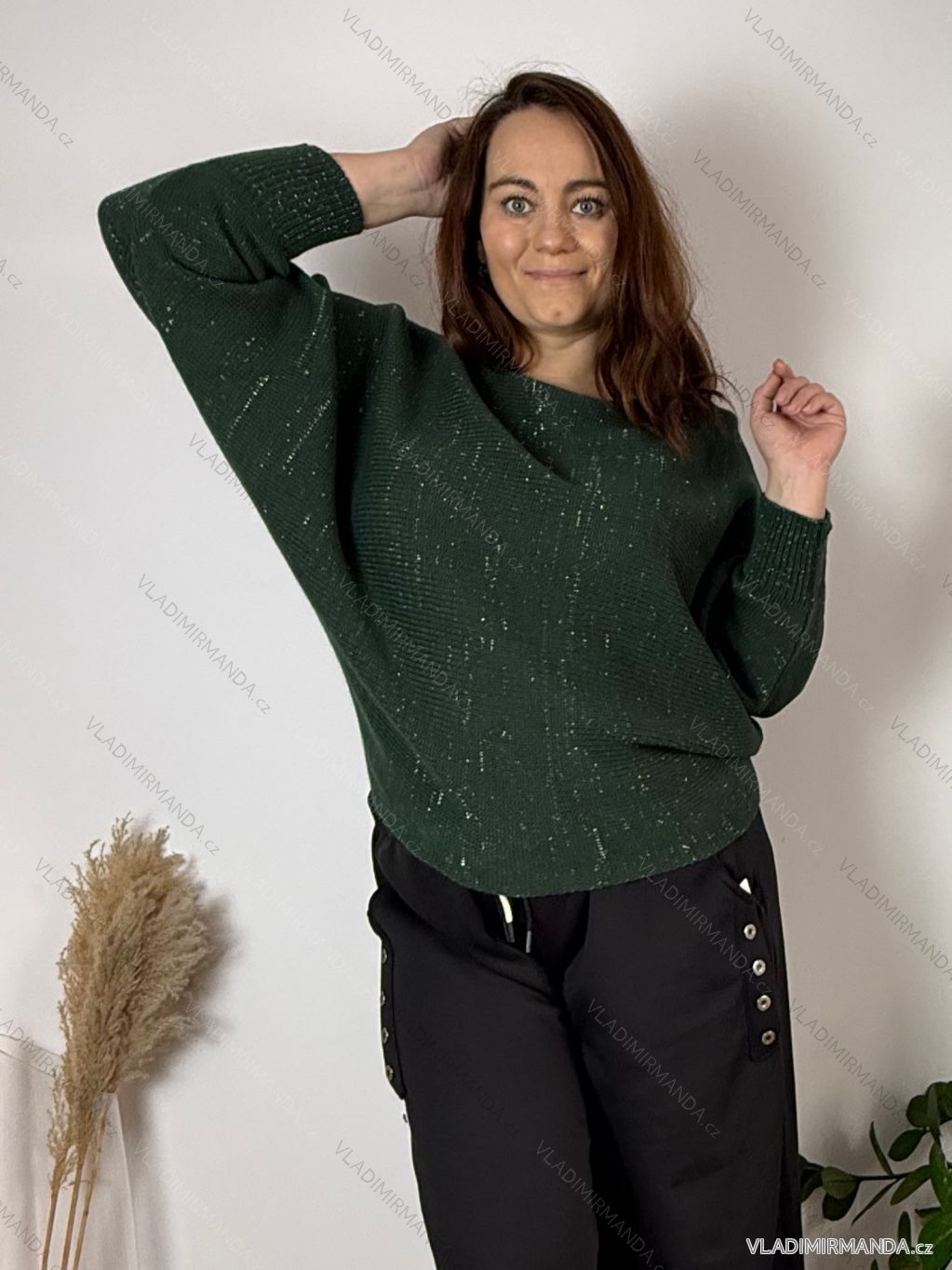 TOVAR (120476) > oblečenie dámske (81594) > Svetre a cardigany (4526) > Svetr dlhý rukáv dámska nadrozmer OLIVIE(54/56/58 ONE SIZE) TALIANSKA MÓDA IM4261112/DU 54/56/58 tmavo zelená