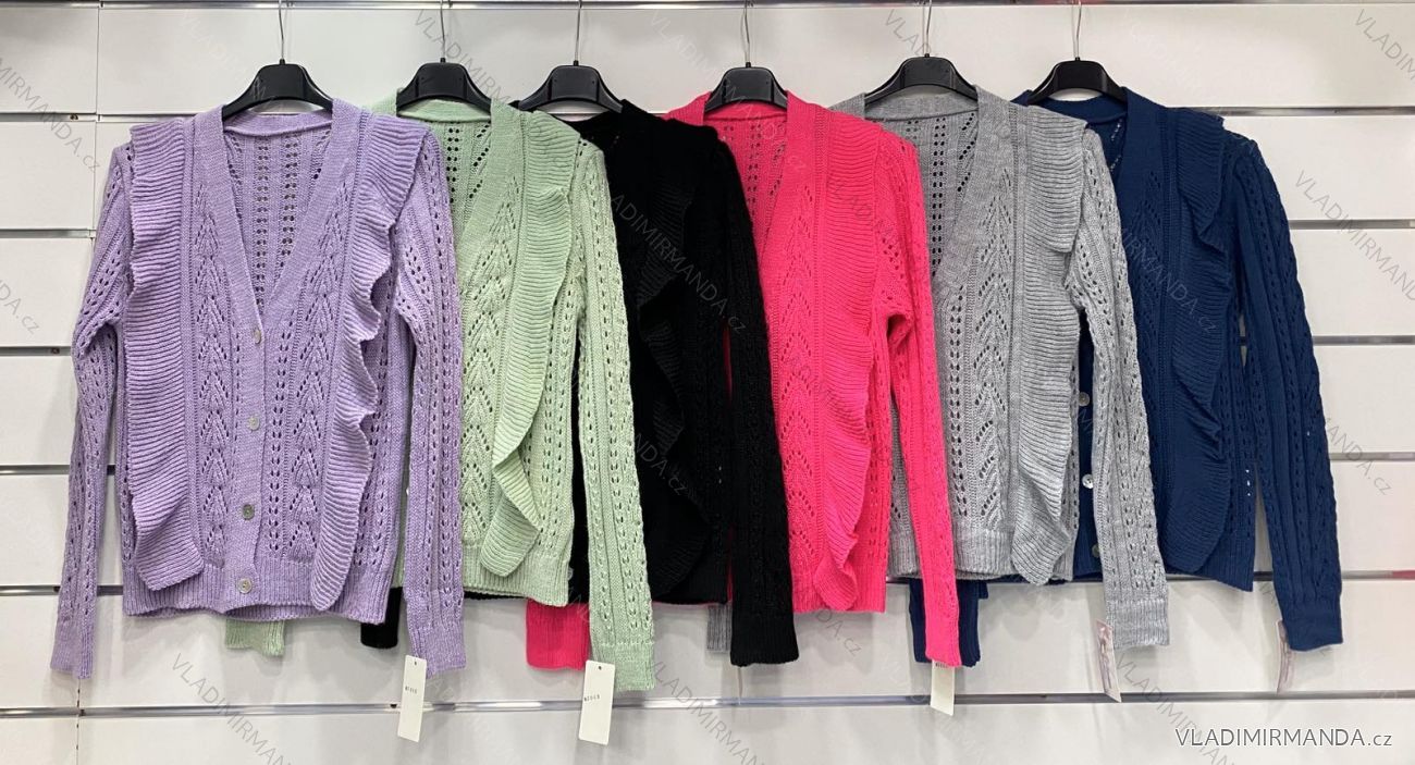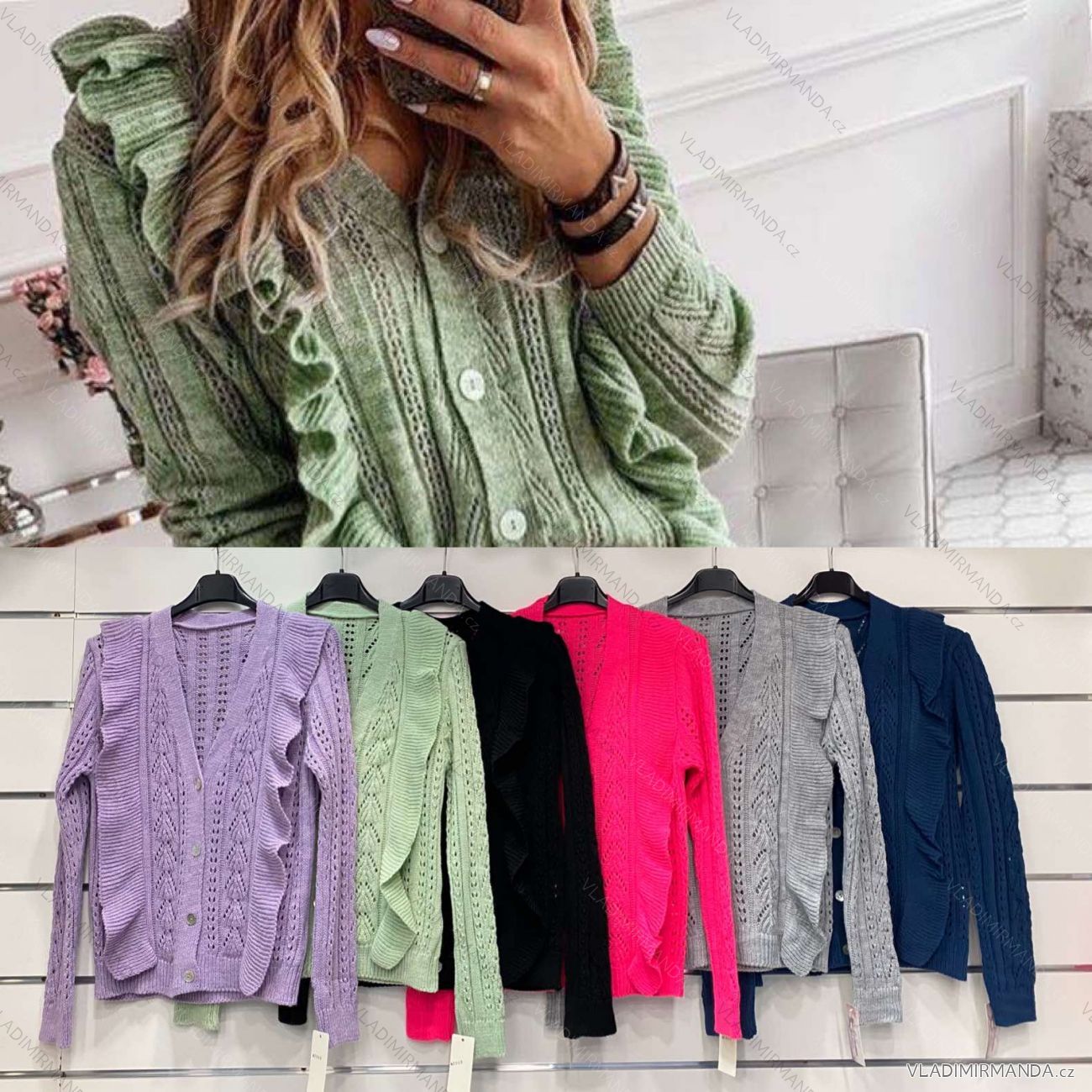 Svetr pletený tenký jarní dlouhý rukáv s volánky dámský (UNI S/L) ITALSKÁ MÓDA IMK20165