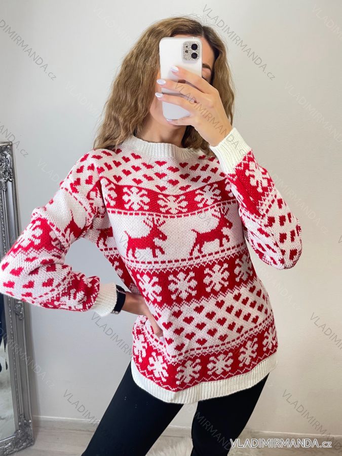 Svetr pletený vánoční dlouhý rukáv dámský (S/M ONE SIZE) ITALSKÁ MÓDA IMPLI228138