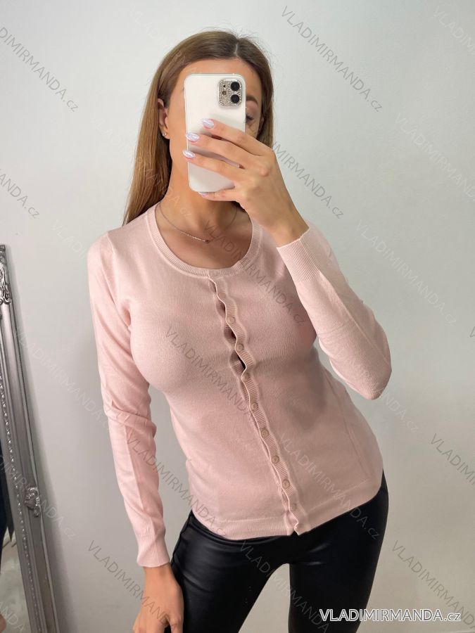 Svetr tenký na knoflíčky dlouhý rukáv dámský (S/M ONE SIZE) ITALSKá MóDA IMM22Fd5803
