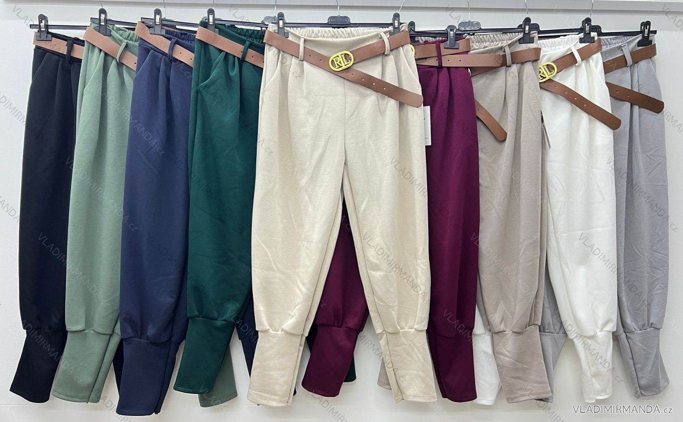 Tepláky/Kalhoty elegantné s opaskom dámske nadrozmer LUCIA (40/42/44 ONE SIZE) TALIANSKA MÓDA IM425060