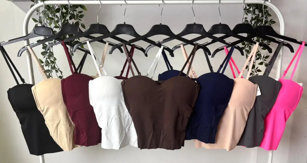 Hladké tielko na nastaviteľné ramienka. Tielko má prsné vypchávky.