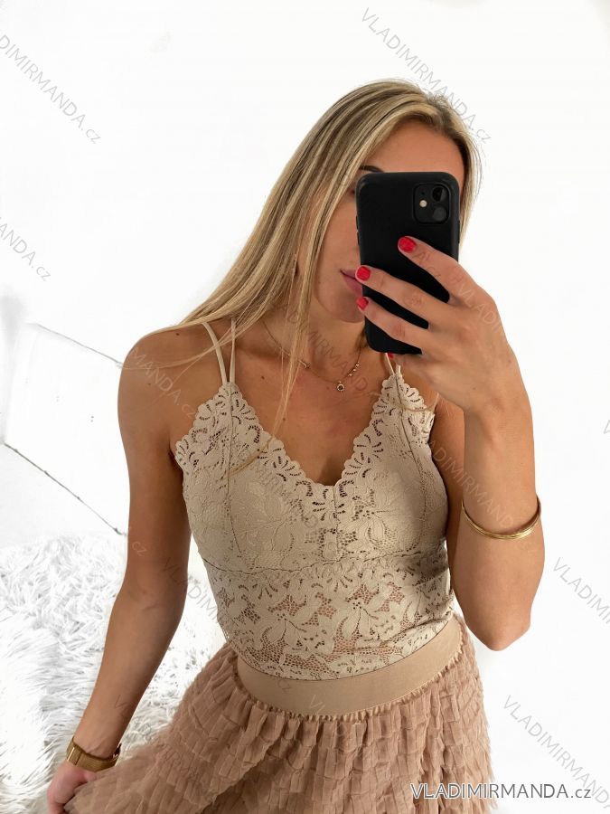Top croptop čipkový na ramienka dámsky (S/M ONE SIZE) TALIANSKA MÓDA IMPMD231041a