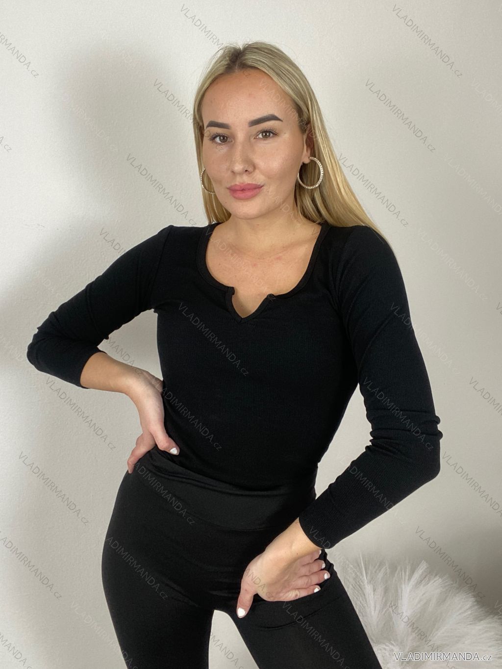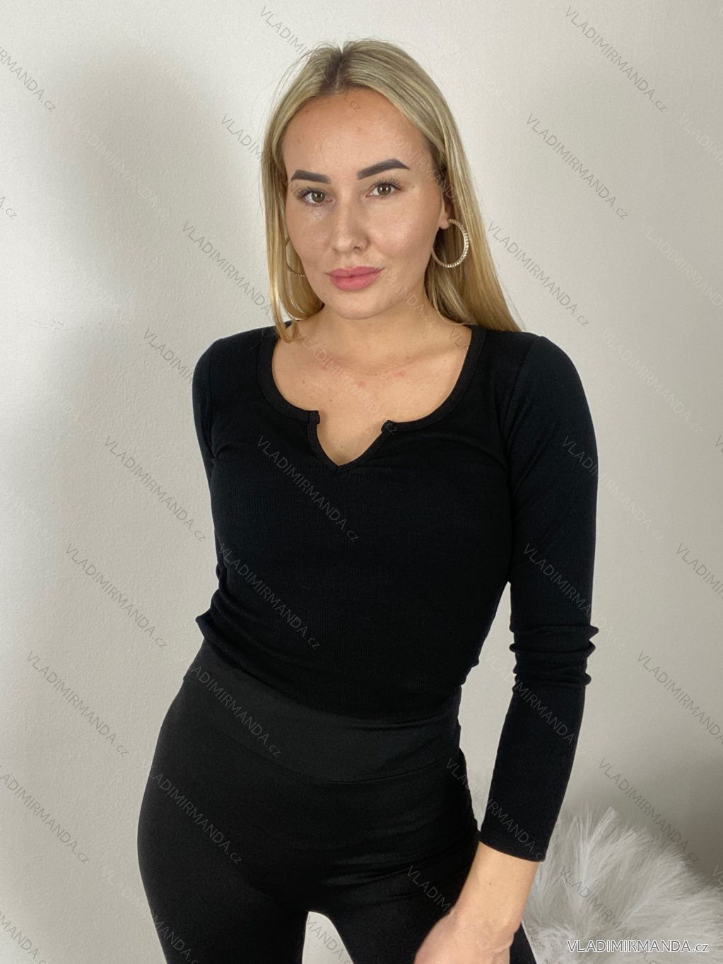 Tričko dlhý rukáv dámske (S/M ONE SIZE) TALIANSKA MÓDA IMPLI252410/DU S / M čierna
