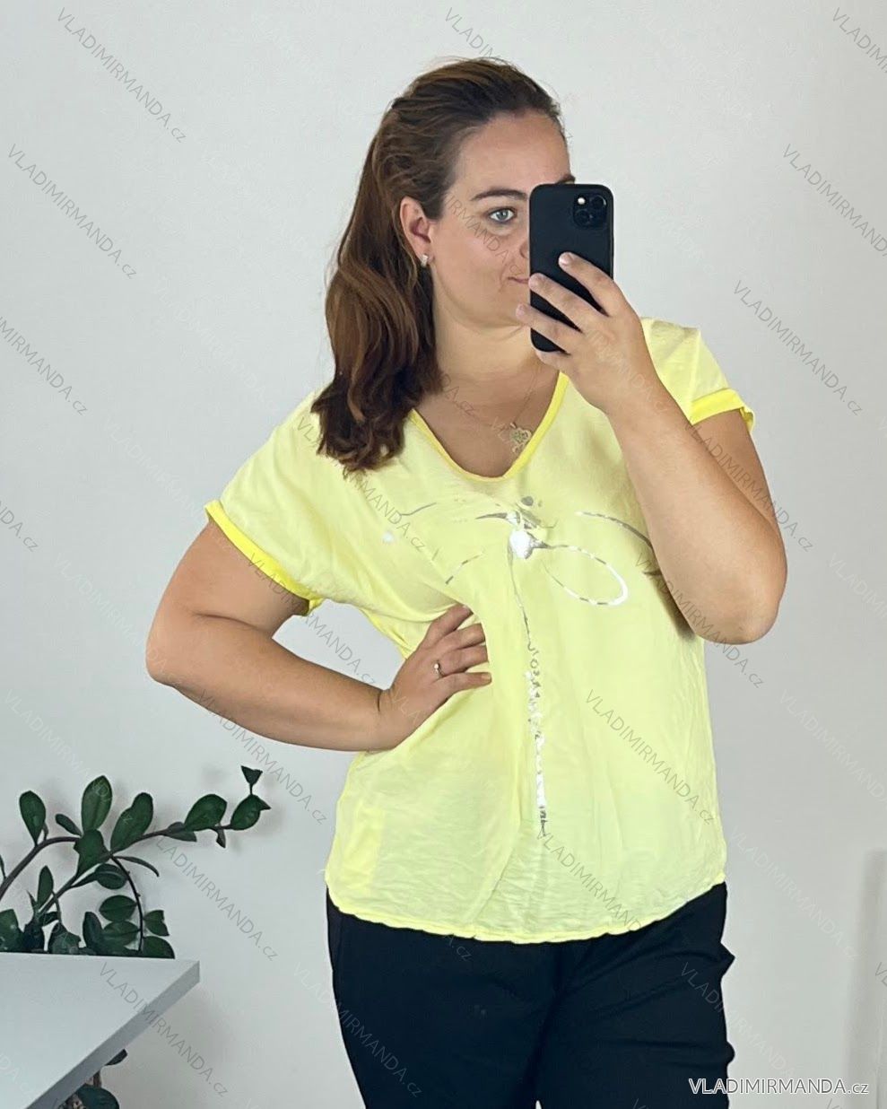 Tričko krátky rukáv dámske nadrozmer (50/52 ONE SIZE) TALIANSKA MÓDA IMSM24SUMMER-2/DU 50/52 žlutá