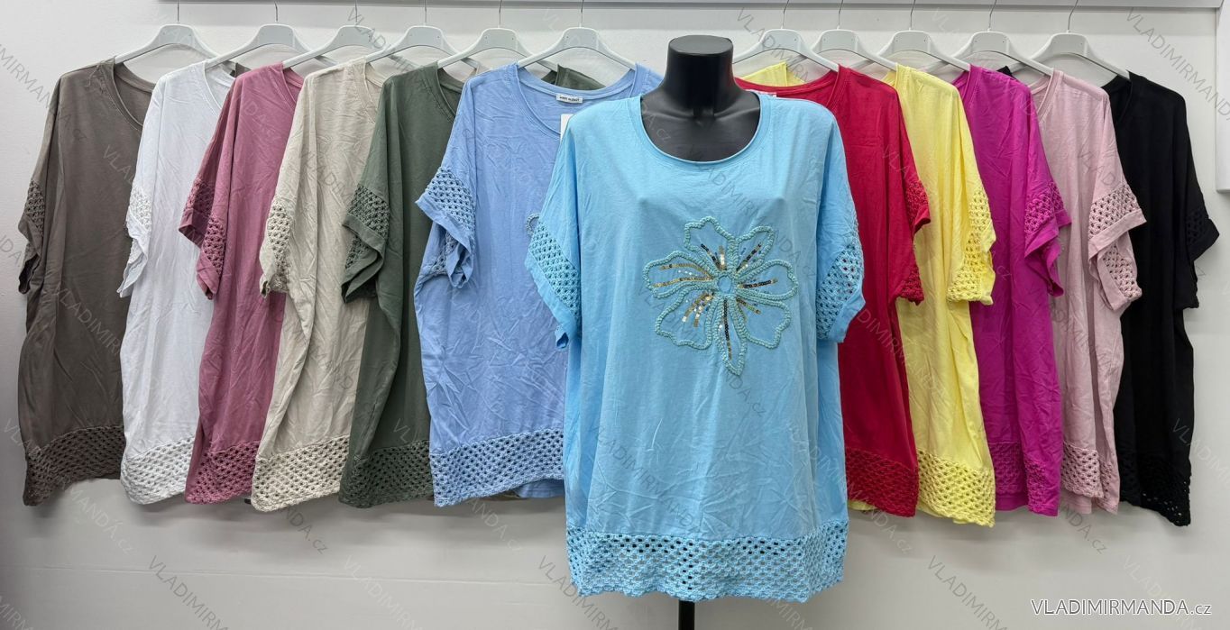 Tričko krátky rukáv dámske nadrozmer (54/56/58 ONE SIZE) TALIANSKA MÓDA IM426086