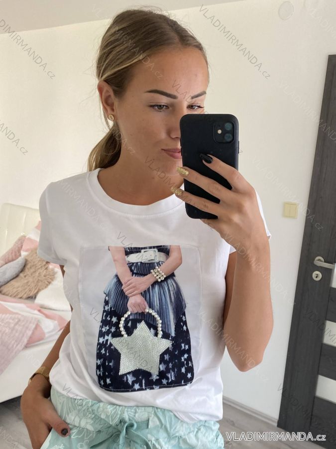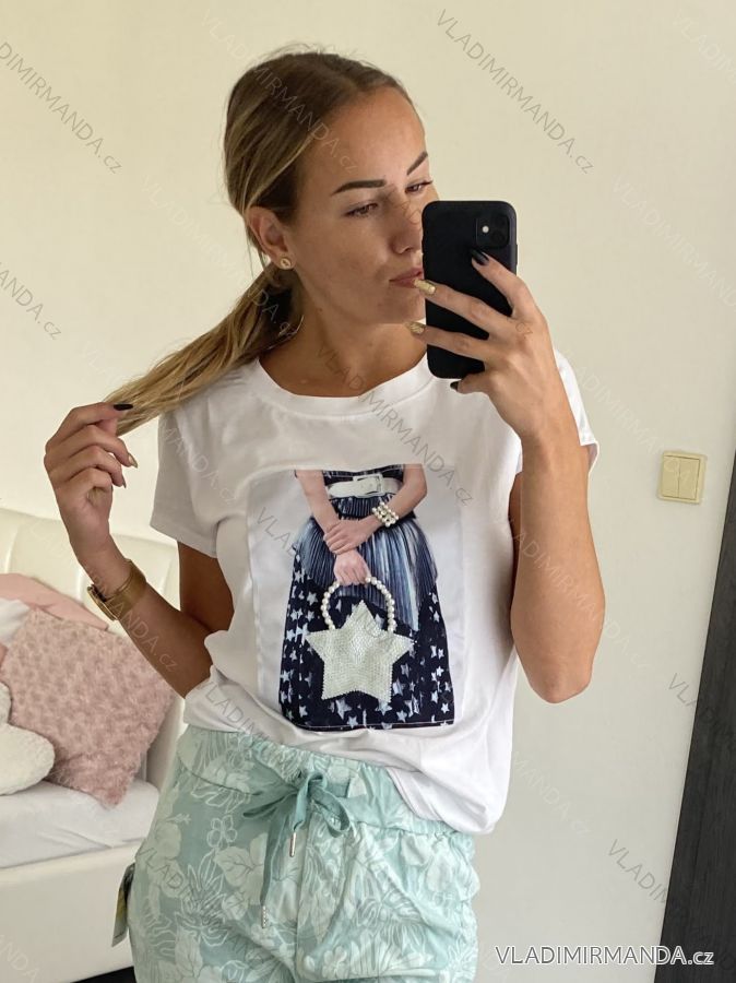 Tričko krátky rukáv dámske (S/M ONE SIZE) TALIANSKA MÓDA IMM22FASHION