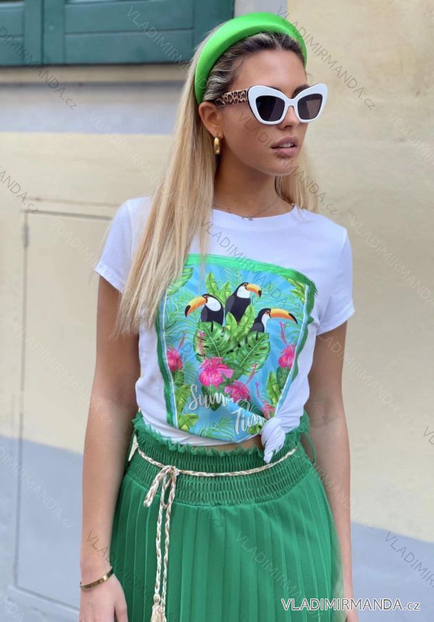 Tričko krátky rukáv dámske (S/M ONE SIZE) TALIANSKA MÓDA IMM24M5256/DR - biela - S / M