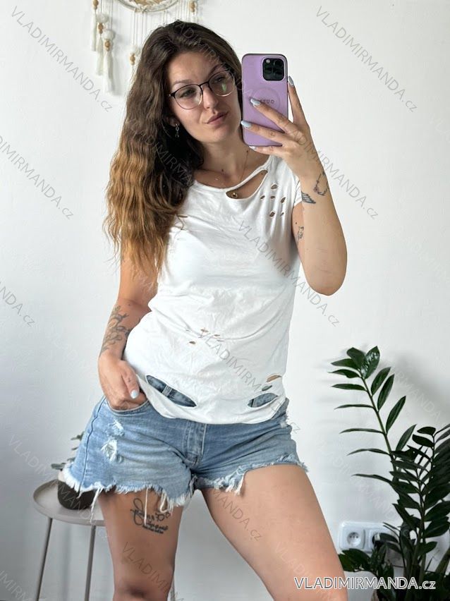 Tričko s krátkým rukávem dírkované dámské (S/M/L) ITALSKá MóDA IM523ELISA biela S/M/L