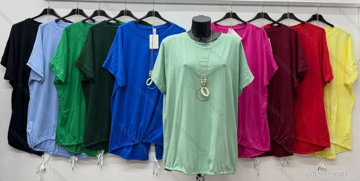TOVAR (120859) > oblečenie dámske (81926) > Topy, tričká, tuniky a tielka (12977) > Tričká (5552) > Tričká krátky rukáv (3898) > Tričko sťahovacie s príveskom krátky rukáv dámske nadrozmer (54/56/58 ONE SIZE) TALIANSKA MÓDA IM426069