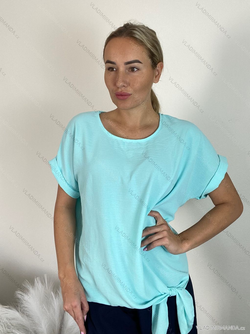 TOVAR (120852) > oblečenie dámske (81919) > Topy, tričká, tuniky a tielka (12979) > Tričko/tunika krátky rukáv dámska (42/44/46 ONE SIZE) TALIANSKA MóDA IMC24062/DR mintová