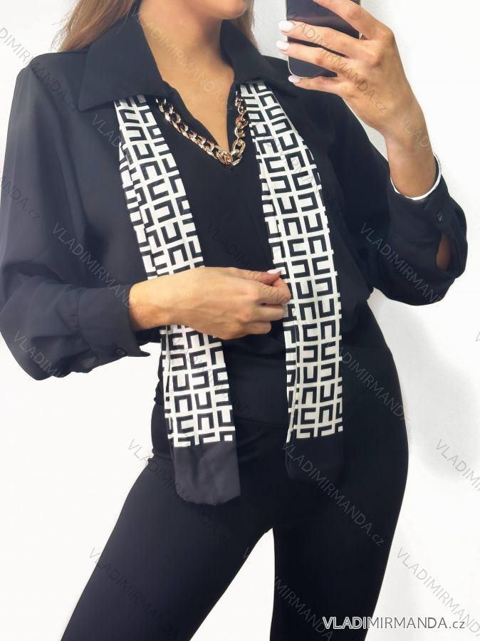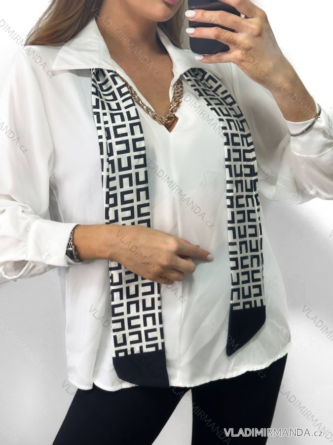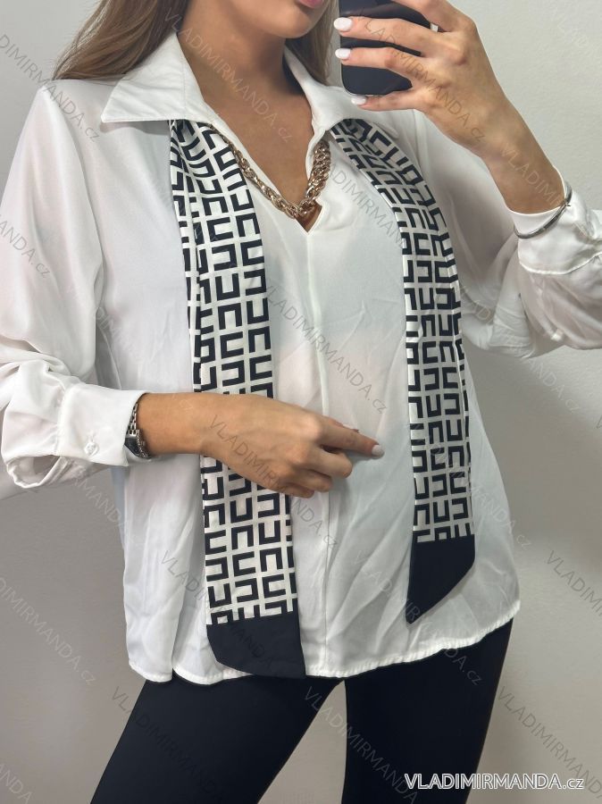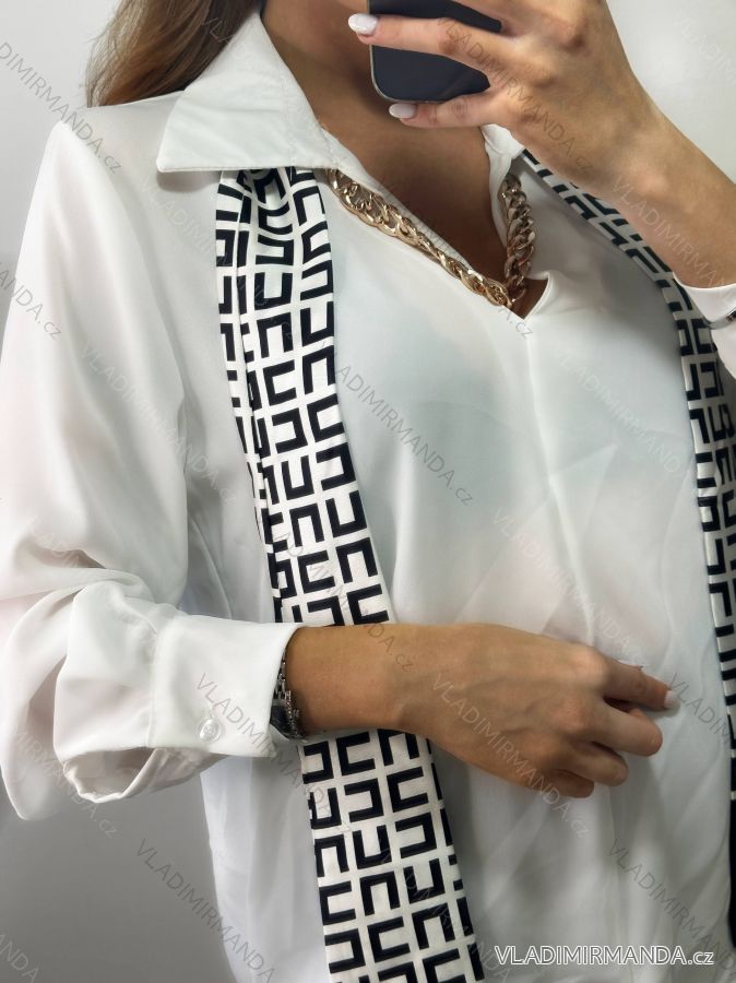 Tunika/blúzka košeľová dlhý rukáv dámska (S/M ONE SIZE) TALIANSKA MÓDA IMPGM2323110