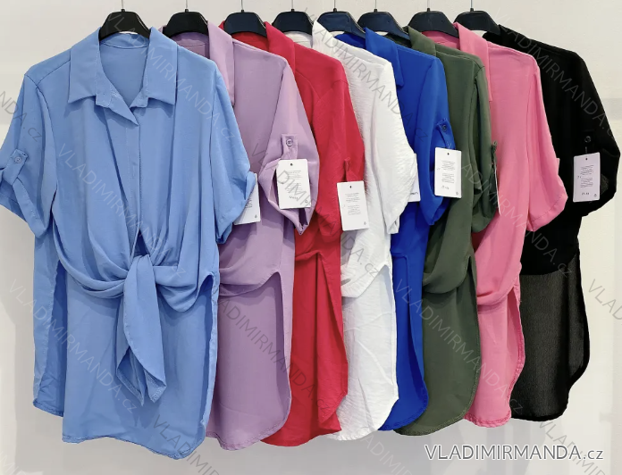 Tunika blúzka košeľová krátky rukáv dámske (S/M ONE SIZE) TALIANSKA MÓDA IMPMD2322468L
