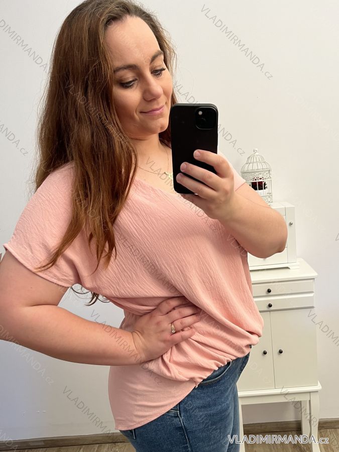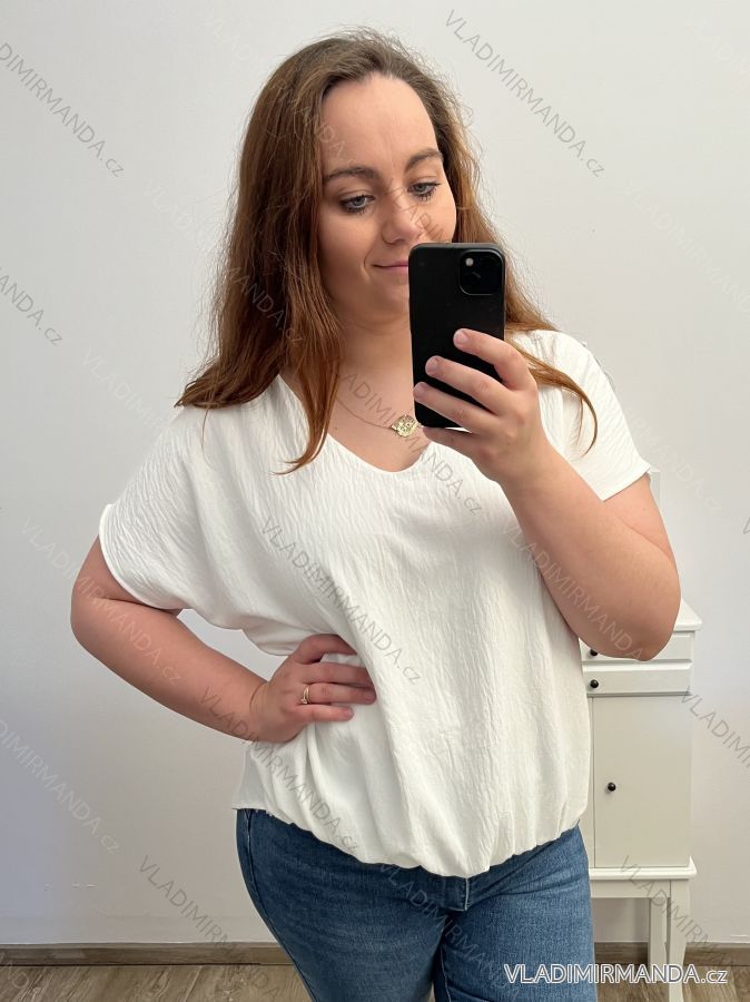 Tunika/blúzka krátky rukáv dámska nadrozmer (2XL/3XL/4XL ONE SIZE) TALIANSKA MÓDA IMD231458/DUR 2XL/3XL modrá